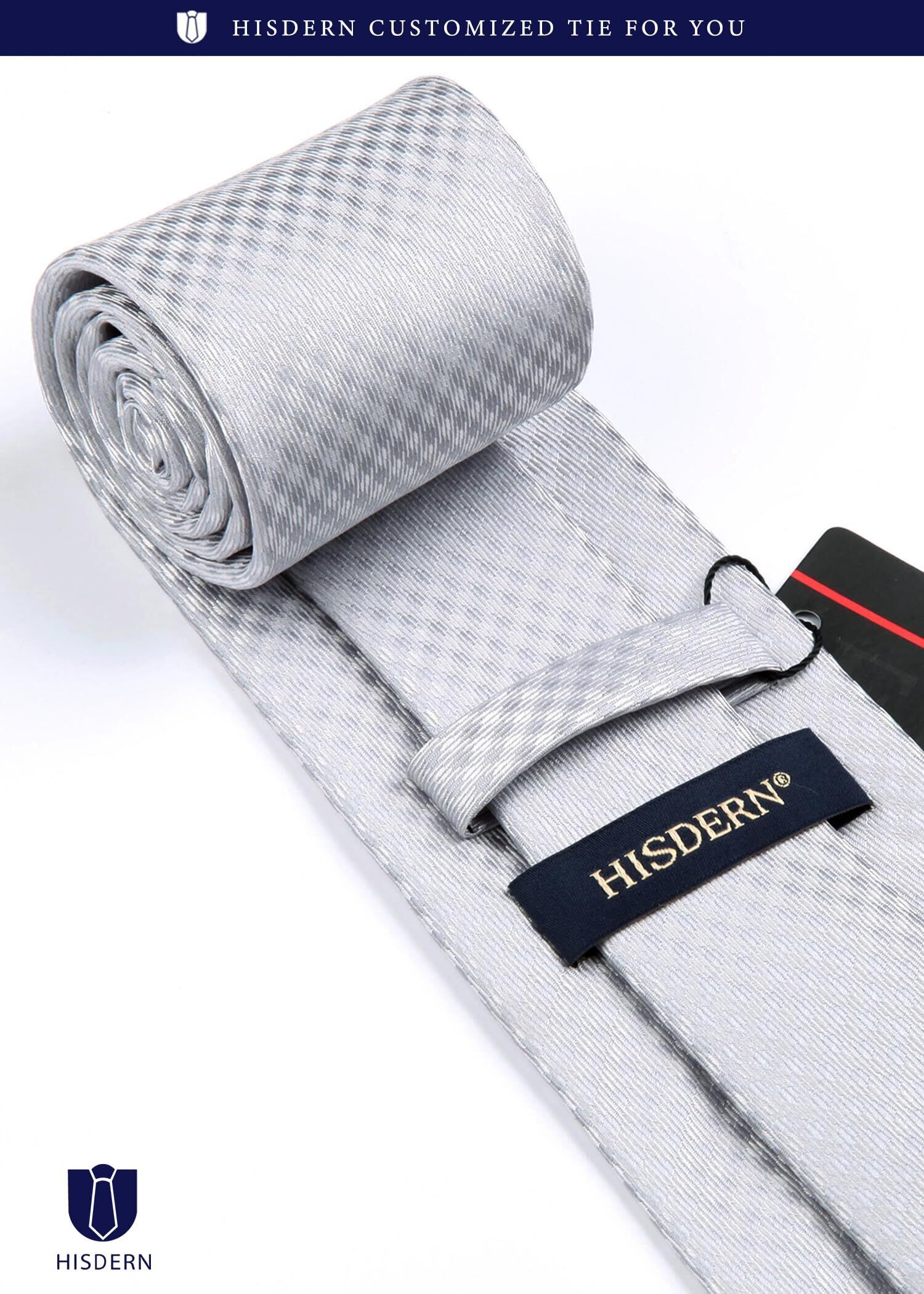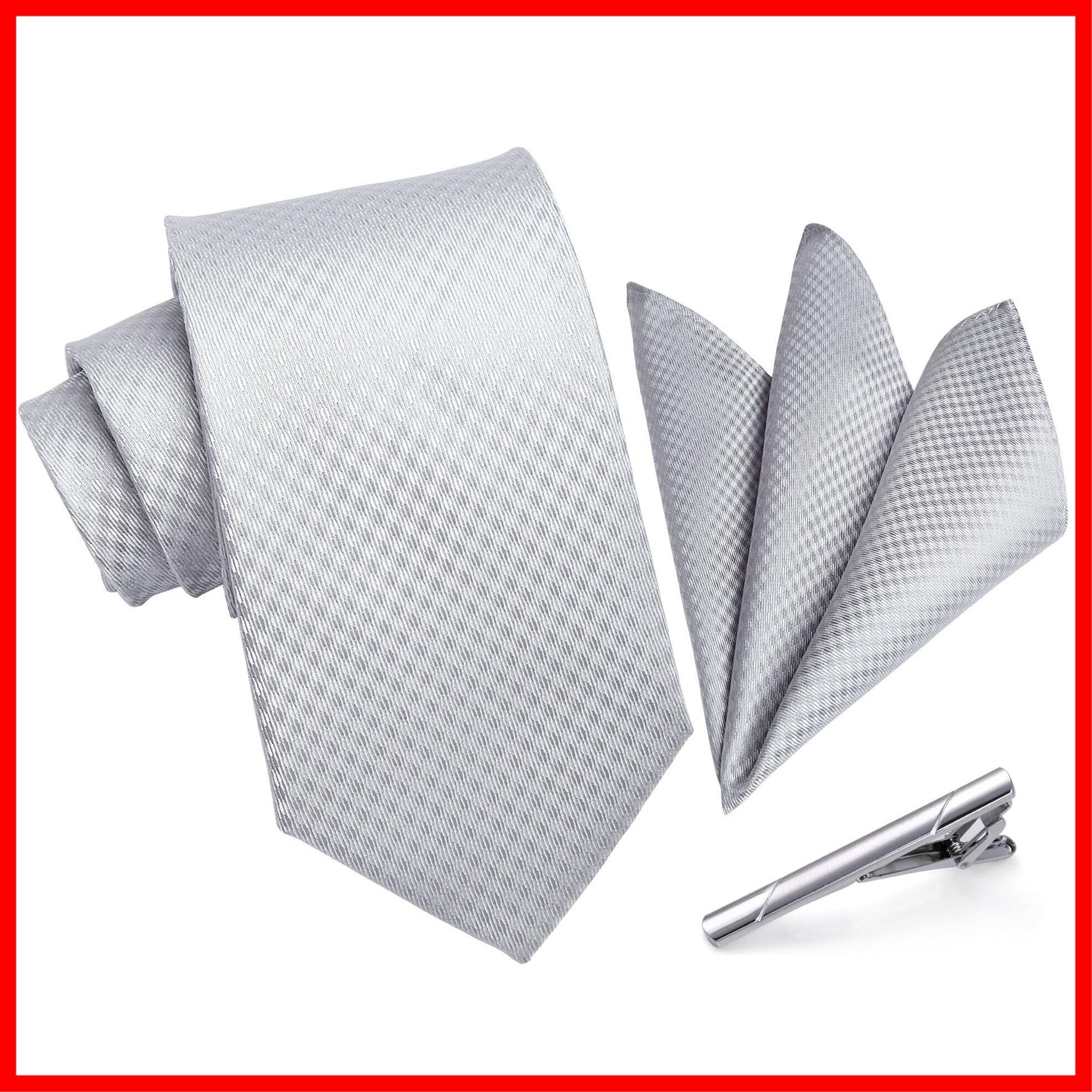 [HISDERN] A3-01 結婚式 シルバー ネクタイ チーフ タイクリップ 3点セット 幅8.5cm メンズ ブランド ギフト ボックス付き 冠婚葬祭 婚礼用 礼服用 紳士用 新郎 12柄