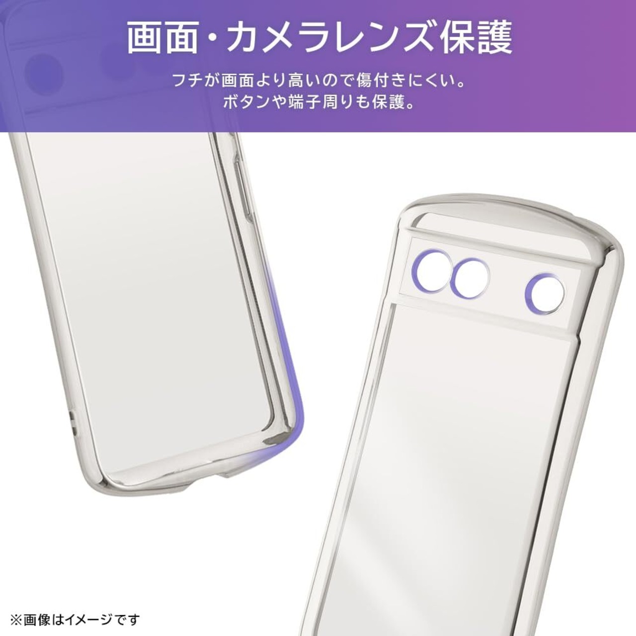 カメラ周りを極限まで保護する精密設計。衝撃をやわらげる全周囲クッション構造。ボタンや端子周りまで保護。密着痕が出にくいマイクロドット加工。