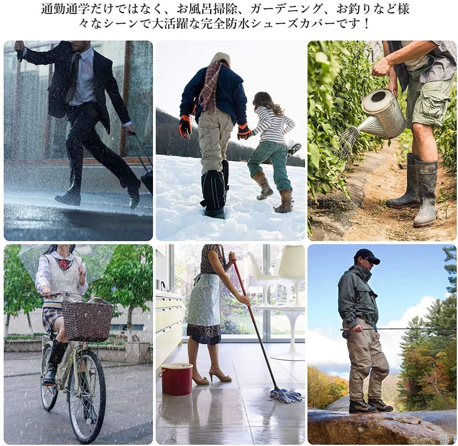 降雨時、降雪時の通勤や通学、洗車時やお風呂掃除、サイクリングや旅行、登山、アウトドアなどのシーンで大活躍しています。※ご注意:靴の種類によって適応サイズが異なる場合がございますので、お手持ちの靴サイズをご確認の上、お買い求めください。画像はあくまで商品のインメージになります。実際の商品と色や仕様が異なる場合がありますので、予めご了承ください。