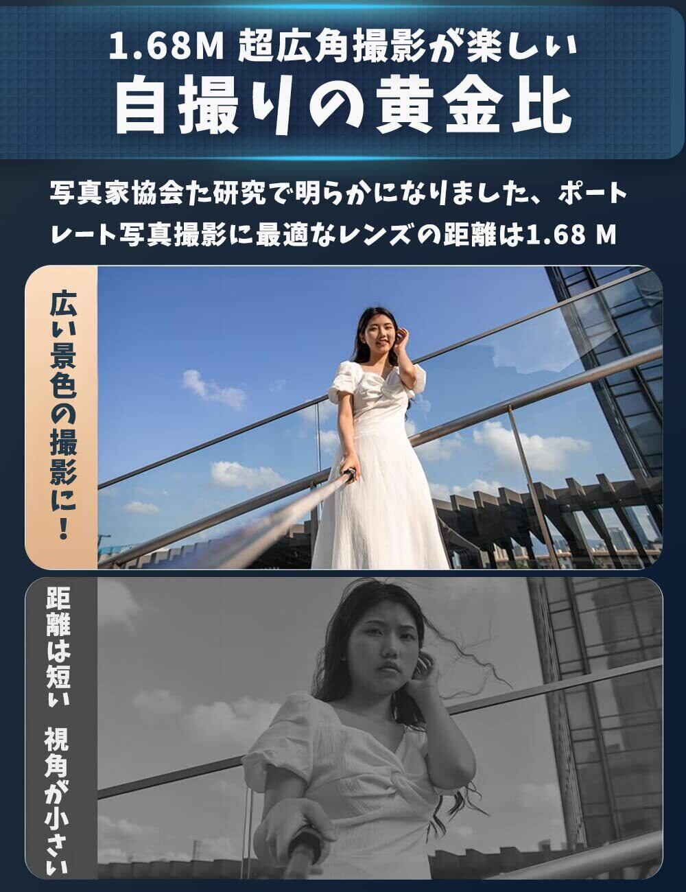 【コンパクで持ち運びやすい 】7段階の伸縮収納方式を採用し、168cmの長さまでに伸びます。折り畳むとわずかの29cmまでコンパクトに収納できます。丈夫なアルミ素材を採用しており、重さは380gです。これ1台あれば、自撮り、集合写真、動画配信などなど いろんなシーンでご利用頂けます。運動会、パレード、イベントなど人が集まる場所で活躍!三脚と一脚を自由変換、撮影、映画放送、TikTok、スマホスタンド、卓上スタンドとしてOKです。ビデオ通話、生放送、Web会議などにも最適です。