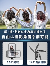 【Bluetooth分離式リモコン 最大15Mの遠隔撮影 】スマホホルダーは水平360°x上下270°回転でき、全域の多角度調整確保します。撮影する景色や被写体に合わせて自由自在に角度を調節できます。Bluetoothリモコンが付きます。シャッターボタンを押すだけで、15m以内の遠隔操作可能です。アプリも要らなく、初期設定でペアリングが必要ですが、一度設定すれば自動接続してくれるのでとても便利です。