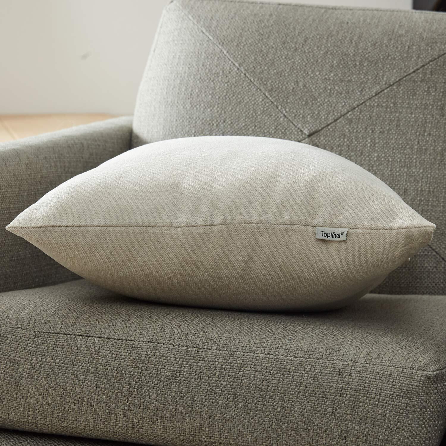 Topfinel クッションカバー リネンっぽい 45×45cm 北欧 おしゃれ 綿麻 無地 ソファ背当て 装飾枕カバー 座布団カバー ホワイト 2枚セット(全10色)