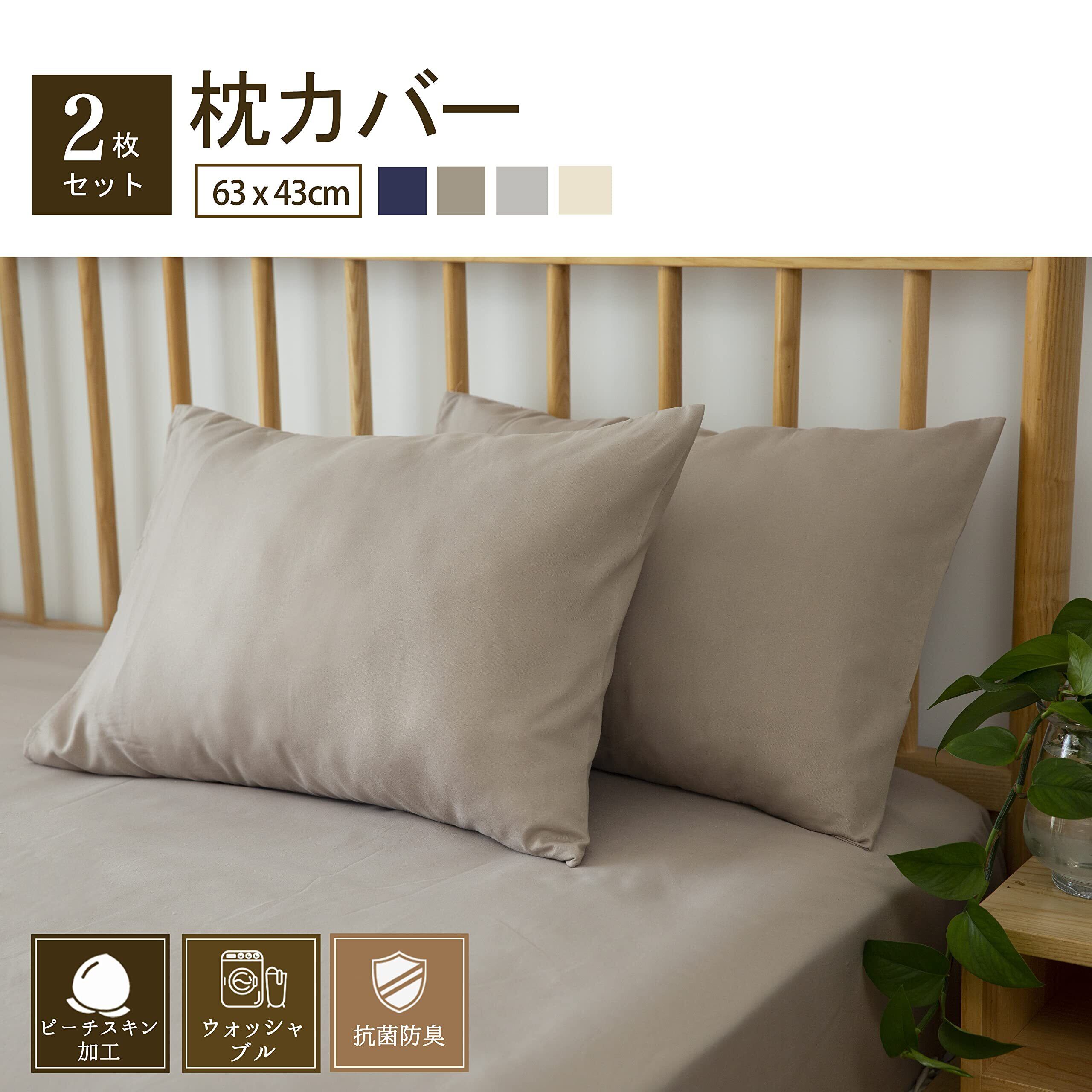 枕カバー 43×63cm 2枚セット 吸湿速乾 オールシーズン 抗菌防臭 合わせ式 ピロケース まくらカバー グレージュ