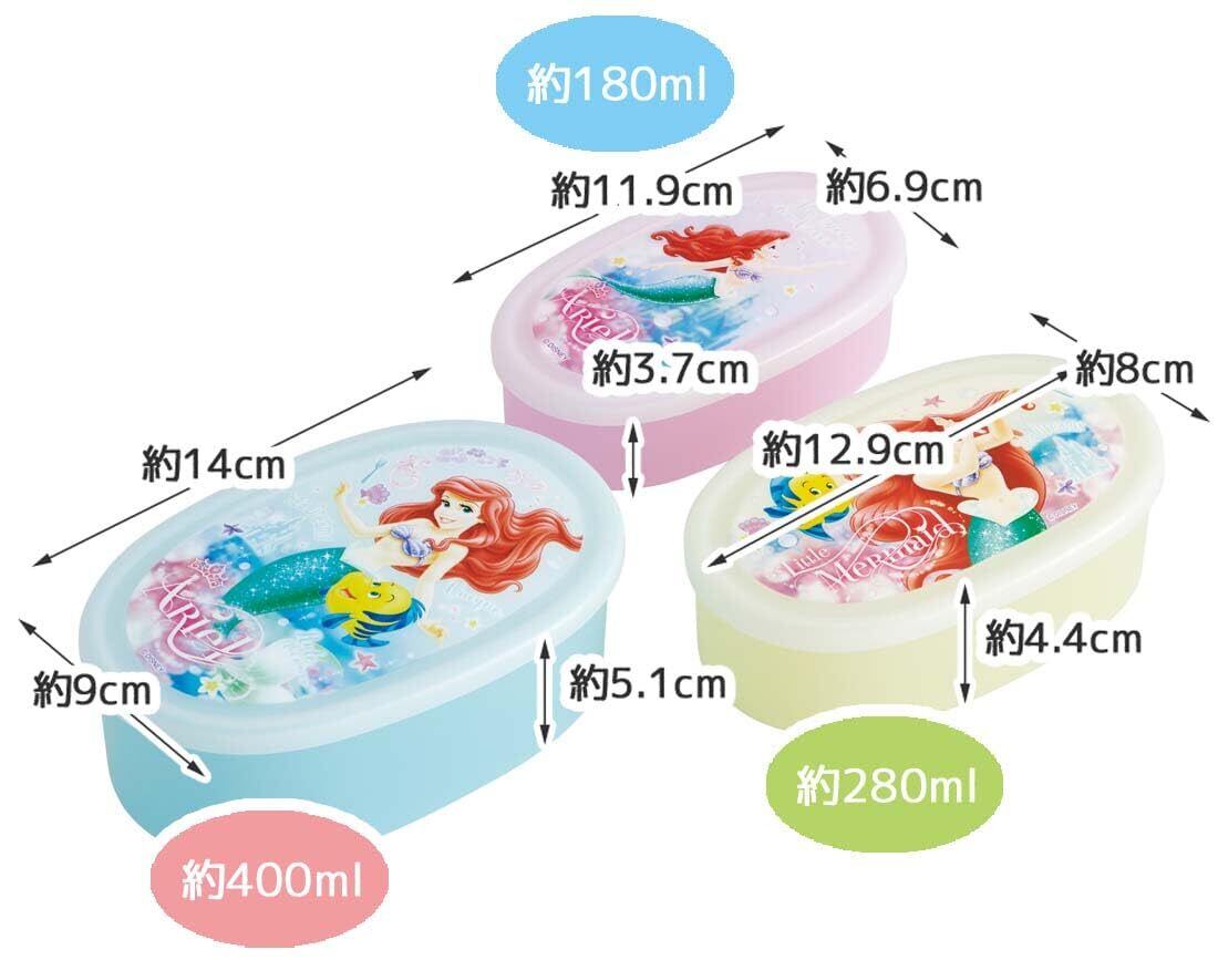 スケーター(Skater) 弁当箱 シール容器 保存容器 日本製 (大400ml 中280ml 小180ml) 3個組 Ag+ 抗菌 ディズニー アリエル 24 SRS3SAG