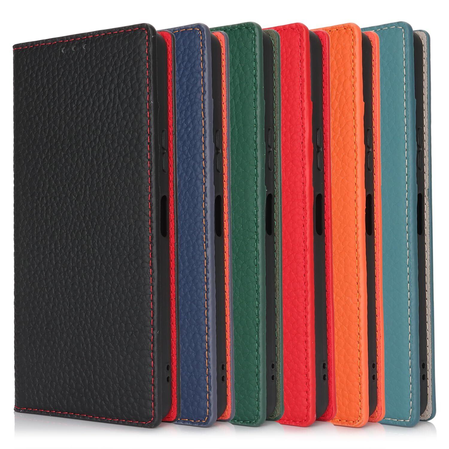 【素材】: シンプルさと高級感を兼ね備えたデザイン, 外殻は牛革製品 本革レザーを採用しており, 内側はスマートフォンにフィットし、隙間なくそれを保護するソフトTPUシリコーン材料で作られています。