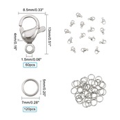 マルカン・カニカンキット: パッケージには、透明なプラスチックの箱に60個のロブスタークロークラスプが付いた120個のオープンジャンプリングが含まれています。