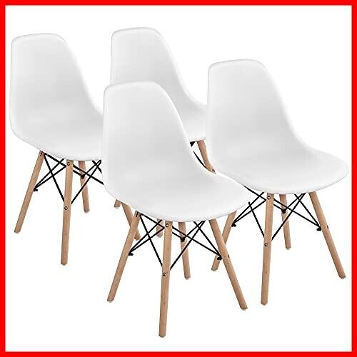 Yaheetech ダイニングチェア イームズchair 4脚セット 食卓椅子 リビング サイドチェア シェルchair 椅子 アームレス 背もたれ付き 人間工学 木製脚 組立簡単 軽量 多用途 キッチン 待合室 会議室 ホテル用 おしゃれ 北欧 ホワイト 46.5x54x81.5cm(4個セット)