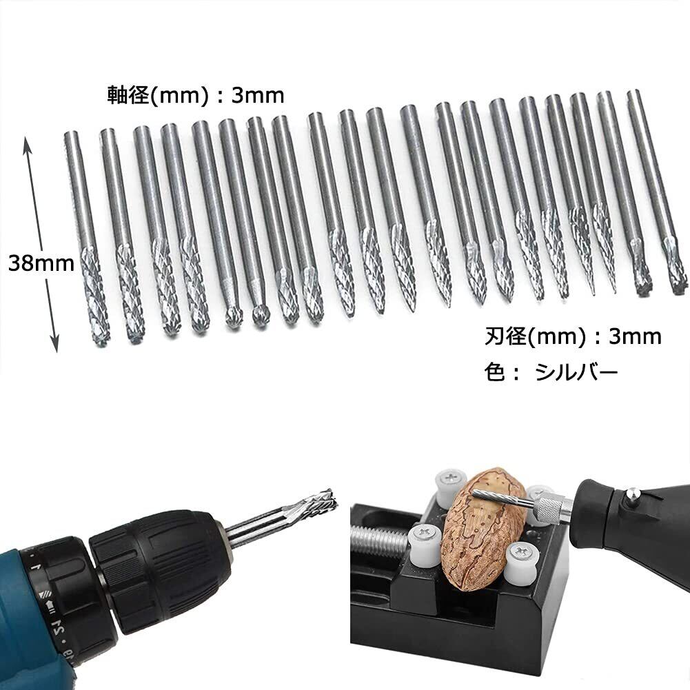 Bestgle超硬バー 3mm軸 超硬カッター ダブルカット タングステンバー ゴリゴリ削れる 回転ヤスリセット 超硬刃ドリルビット リューター ビット切削 研磨用 刃幅3mm 20本入り 収納