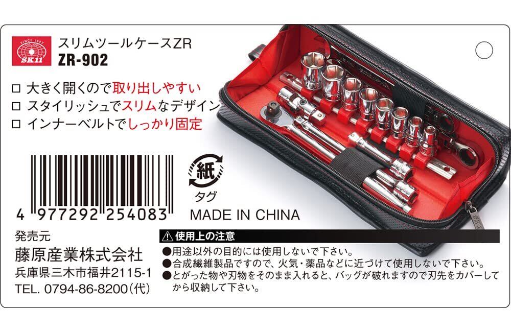 SK11 スリムツールケース ZR-902 260×60×60mm インナーベルト付 ブラック