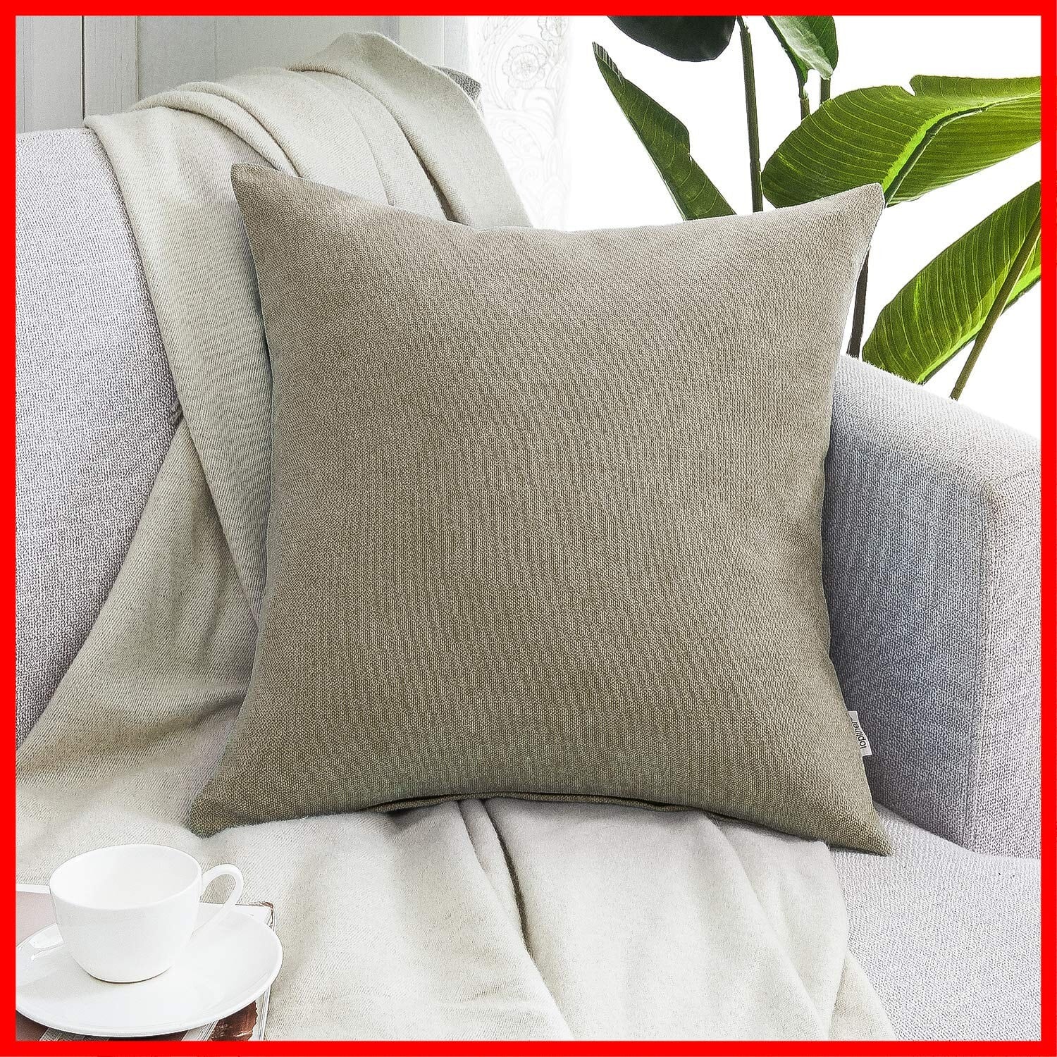 Topfinel クッションカバー リネンっぽい 60x60cm 北欧 おしゃれ 綿麻 無地 ソファ背当て 装飾枕カバー 座布団カバー カーキ 1枚入り(全18色)