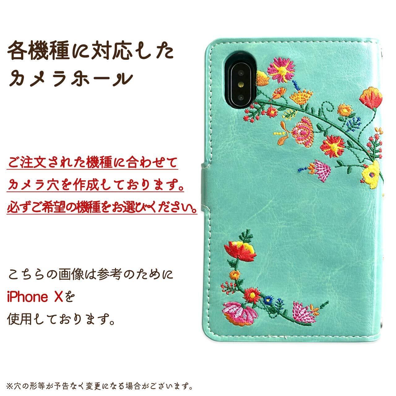 iPhone 15 Pro Max ケース カバー 手帳型ケース iPhone15ProMax 15ProMax アイフォン 15プロマックス 【NB】 花刺繍 ペパーミントグリーン green | hananoki