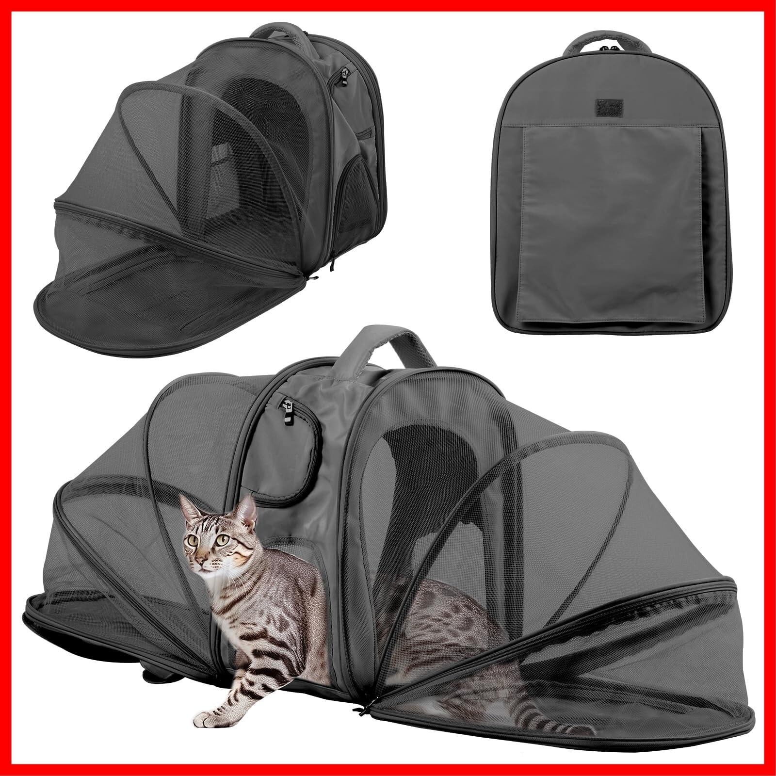 【hidemasa】キャリーバッグ 犬 猫 ペットキャリー リュック 大容量 広がる 折りたたみ 拡張可能 3way ペットキャリーバッグ メッシュ加工 小型犬/大型猫/小動物 お出かけに便利 通院 避難 散歩 移動用 (ダークグレー)