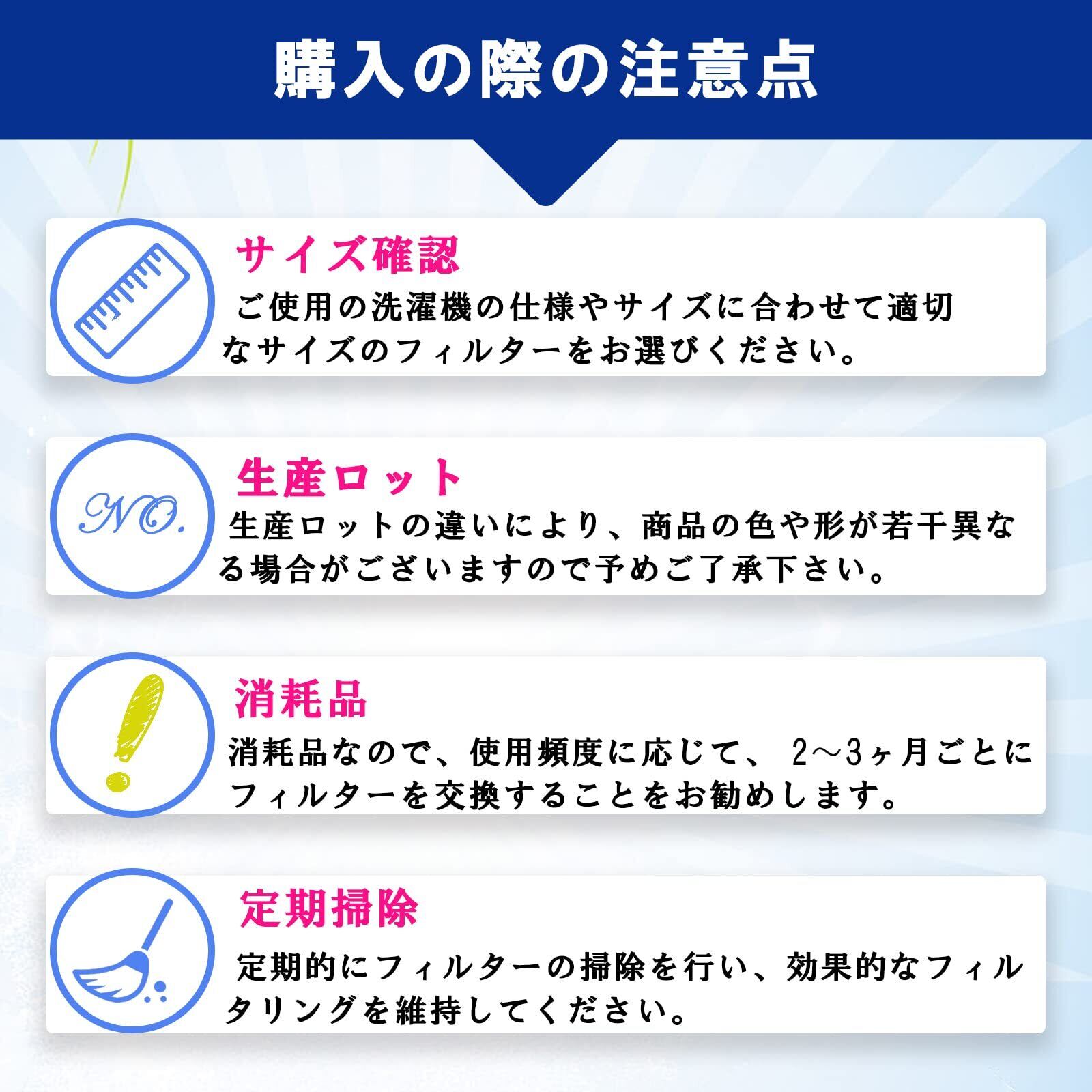 ※ご購入の際は、洗濯機の、本体型番、フィルター形状をご確認ください。特に違う形状のフィルターを複数個使用されている洗濯機の場合は、必ず交換したいフィルターの形状をご確認ください。