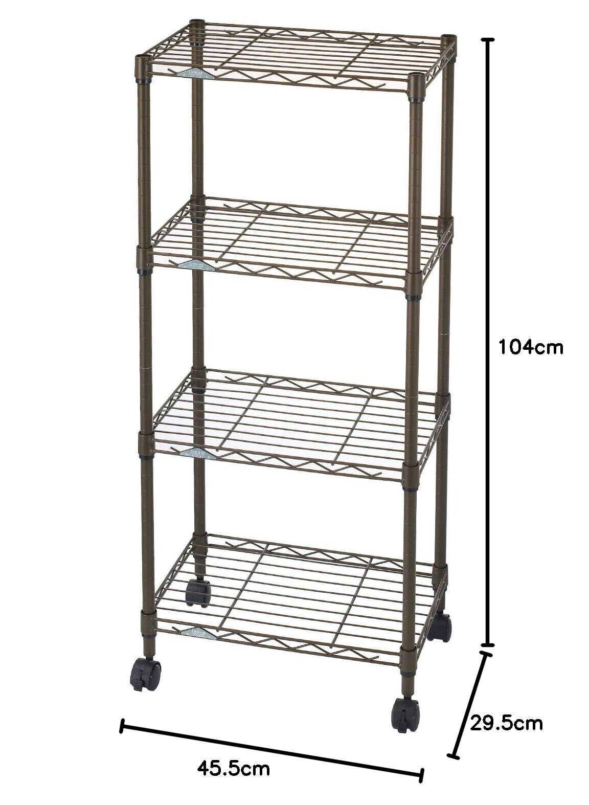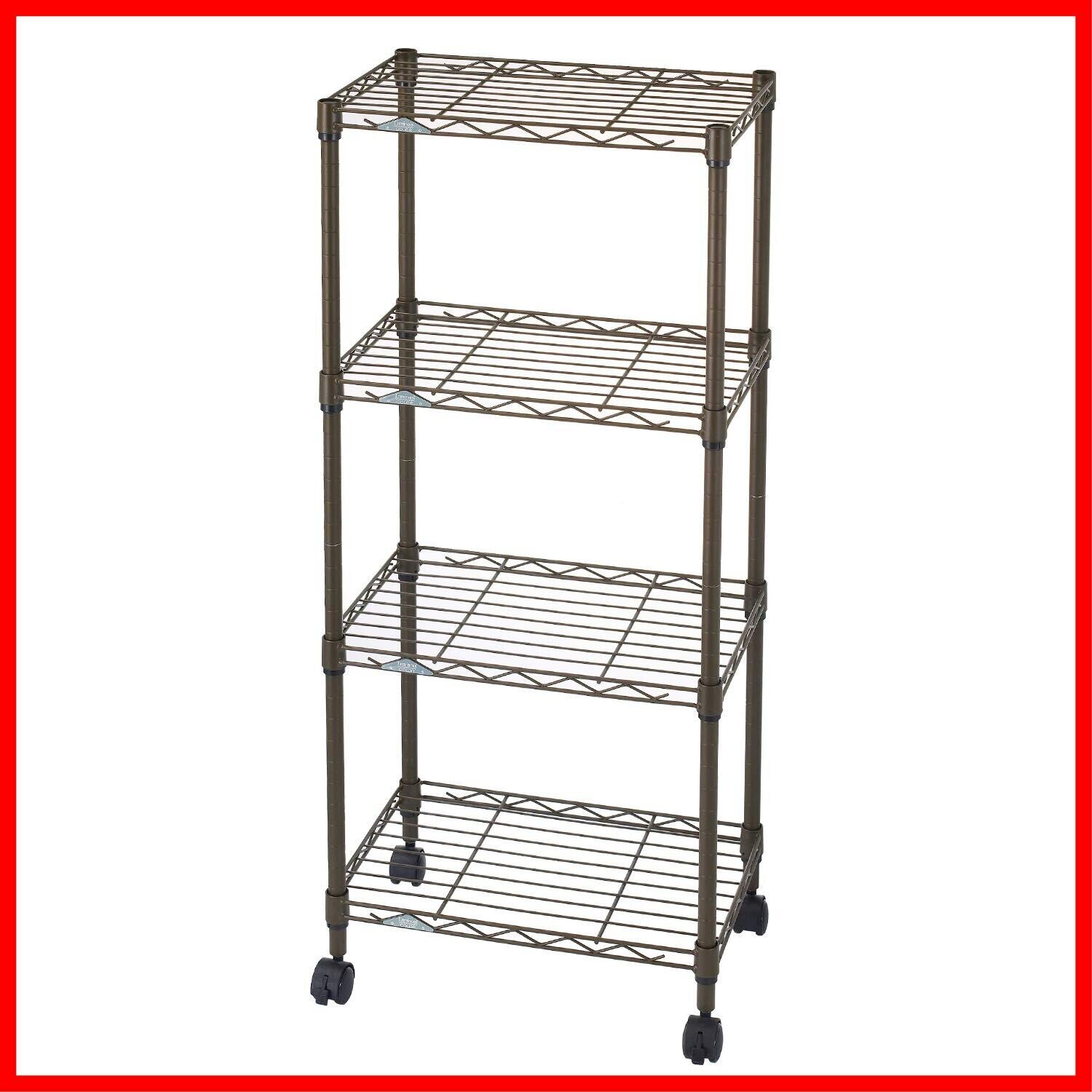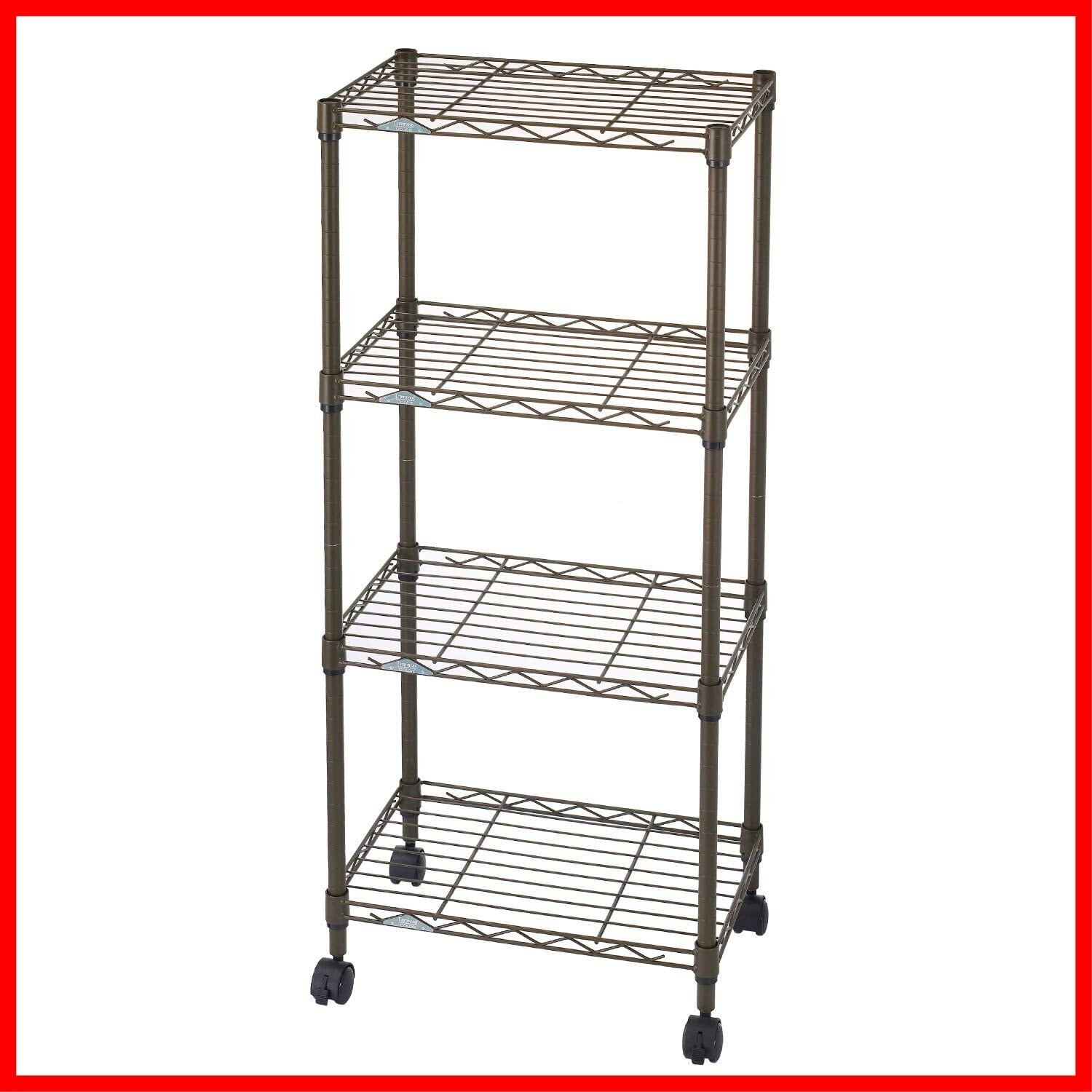 ドウシシャ ルミナス カラーラック ブラウン 4段 幅45 スリム オシャレでかわいい スチールラック 棚 収納 全体耐荷重120kg キャスター付き ポール径19mm 幅45.5×奥行29.5×高さ104 キッチン ランドリー 押し入れ LCR45-4BR | hananoki