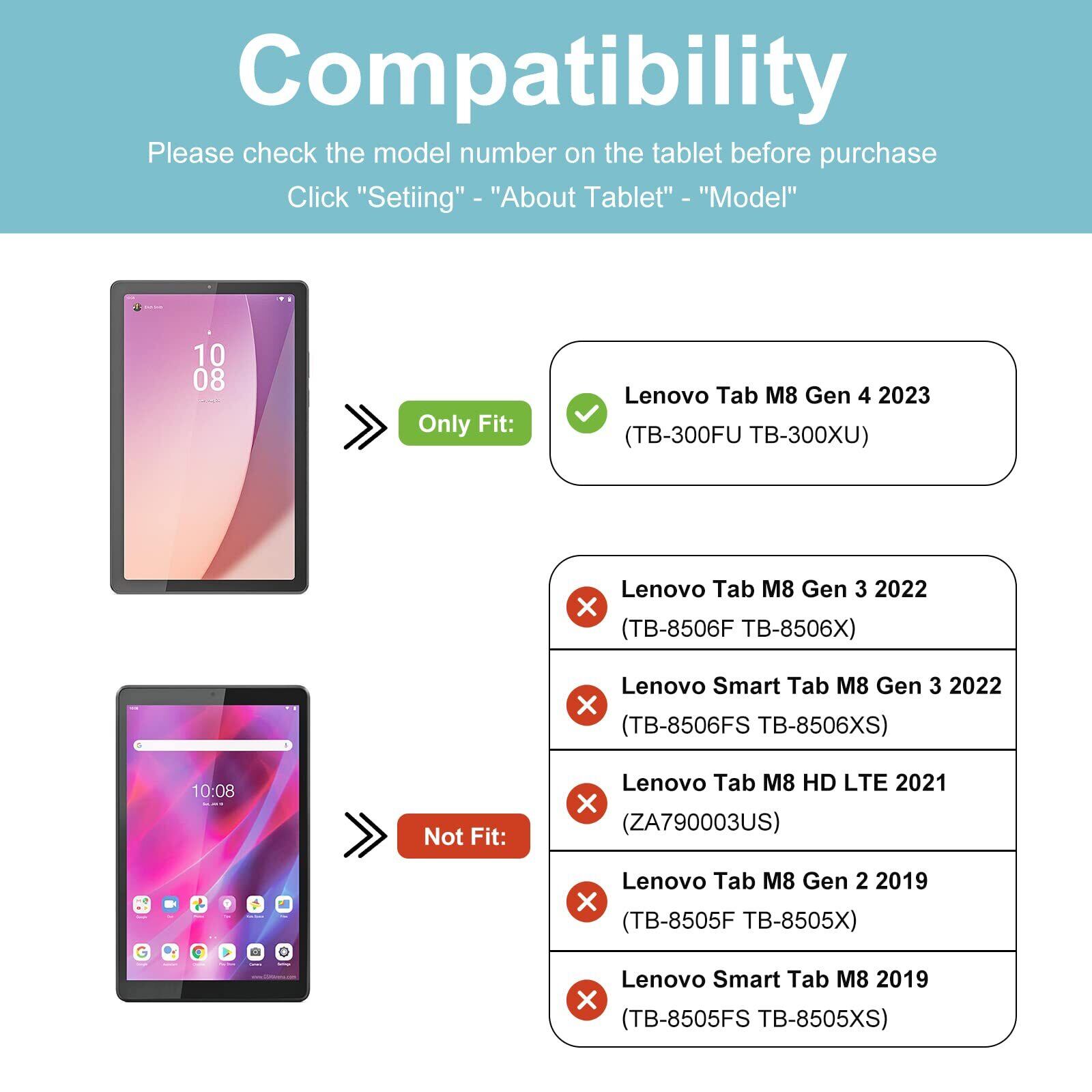 適用機種:Lenovo Tab M8 (4th Gen) 2023発売(ZABU0172JP)/NEC LAVIE Tab T8 (TAB08/H04)のみ適用します;ご購入前、お持ちのタブレットのモデル番号をご確認いただきます