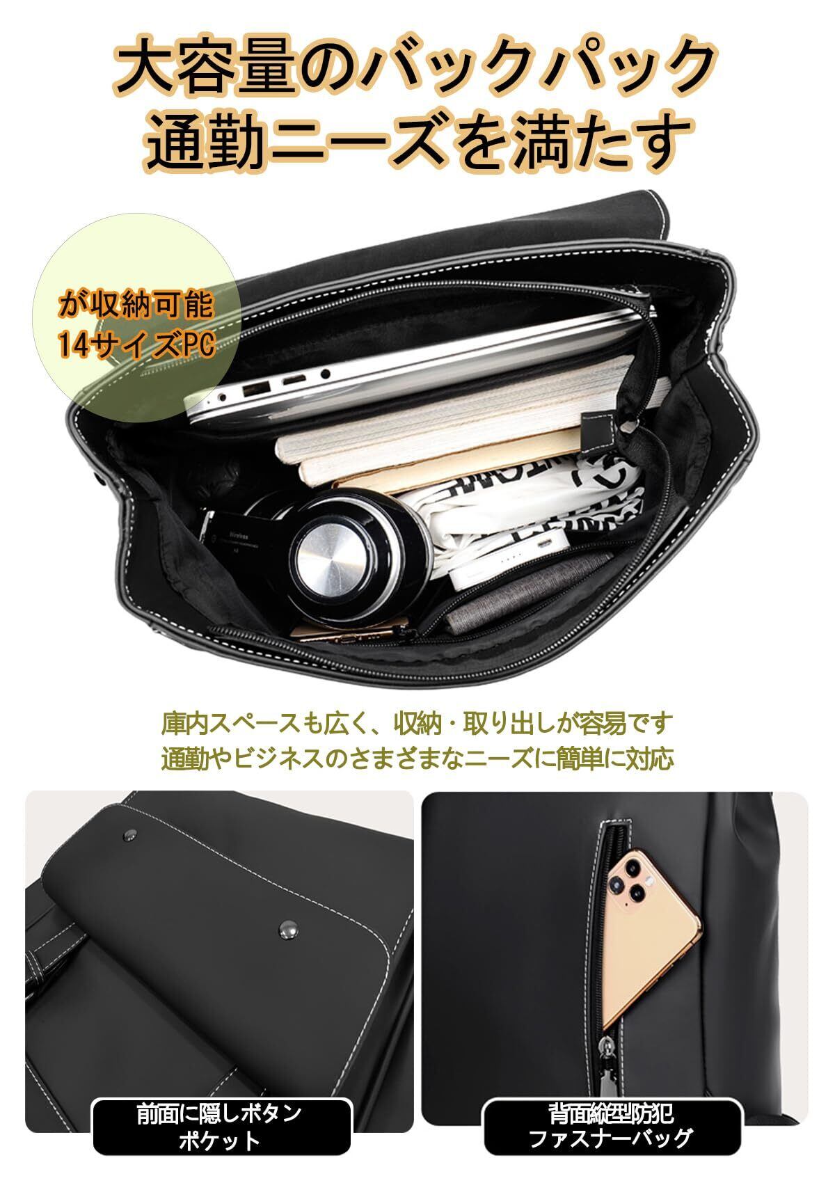 [Cosylive] メンズ リュック 大容量 PU 革 ビジネスバッグ PC 14~15.6インチ 収納 ビジネスリュック バックパック 2WAY リュックサック 防水 通勤 出張 旅行 プレゼント用 男女兼用 | hananoki