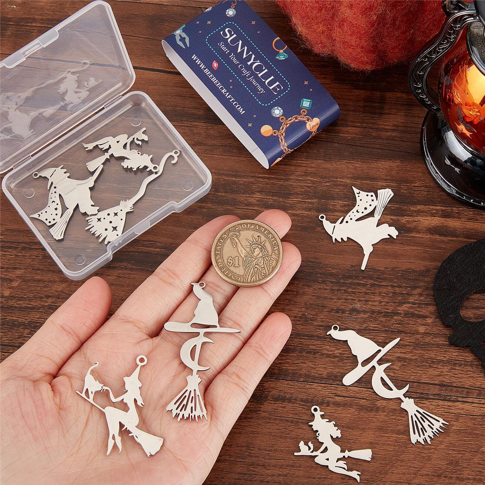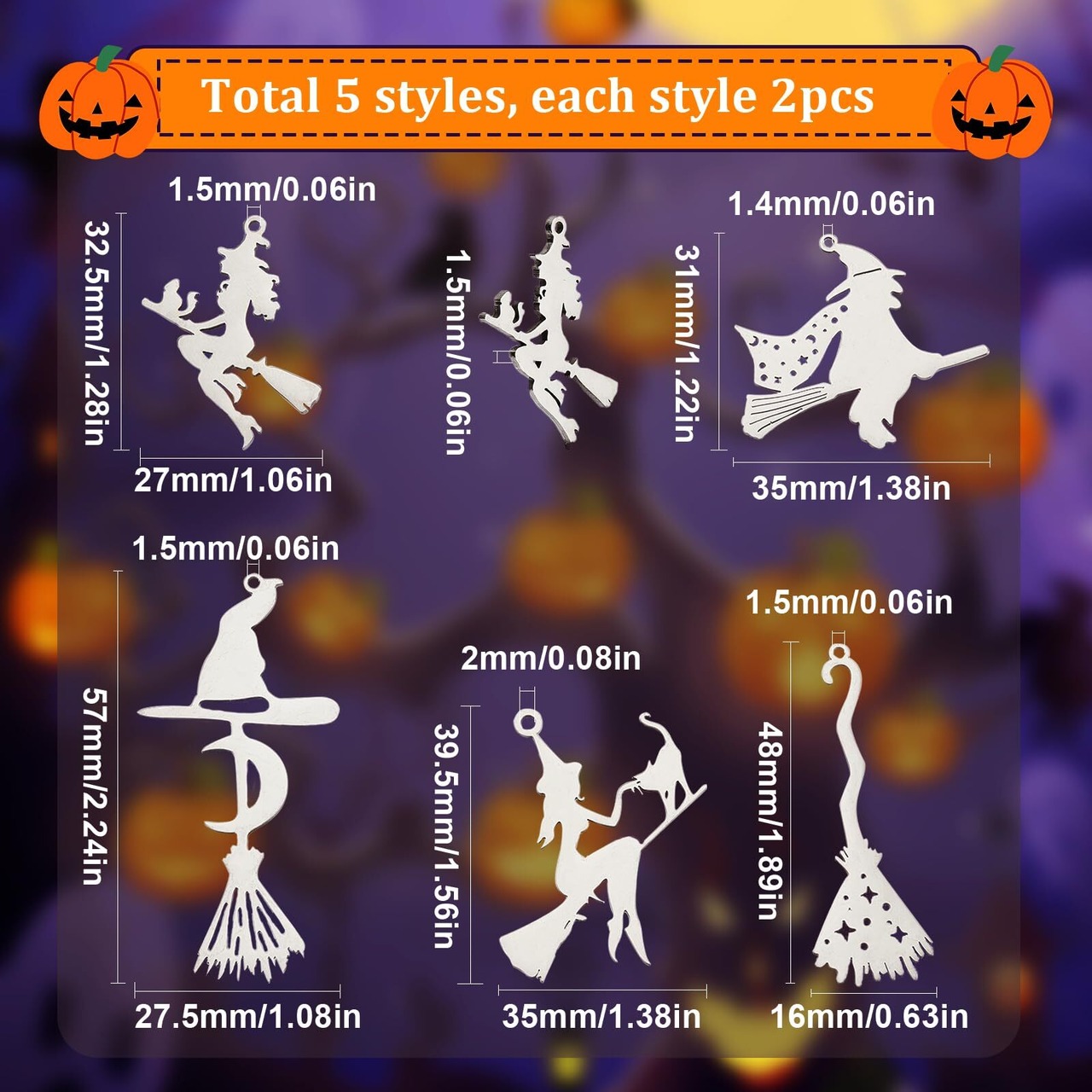 SUNNYCLUE 10個5種 ハロウィン チャーム ゴシック風 ハロウィン ステンレス チャーム 魔女の帽子 チャーム 魔女 パーツ ネコ ピアス 幽霊 イヤリング 箒 ネックレス 魔法使いの帽子 幽霊 ブレスレット 魔法 キーホルダー メタルパーツ 暗黒風 ほうき 銀色 魔法使い チャーム アンチック 帽子 合金チャーム チャームパーツ アクセサリー 基礎パーツ ジュエリー作り レディース デコキット クラフト手芸 手作りハンドメイド キット DIY飾り物