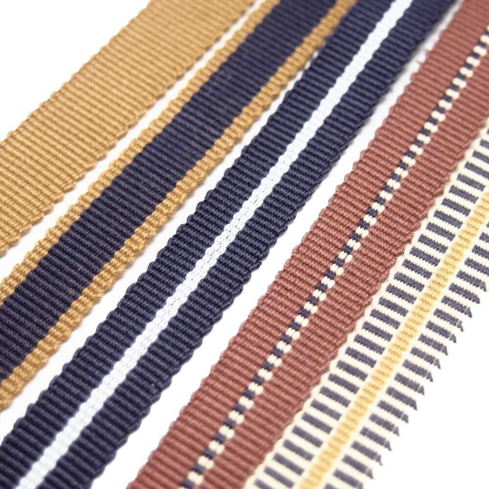 一重真田紐:遠州・茶柄・紺白・茶/紺・黄土