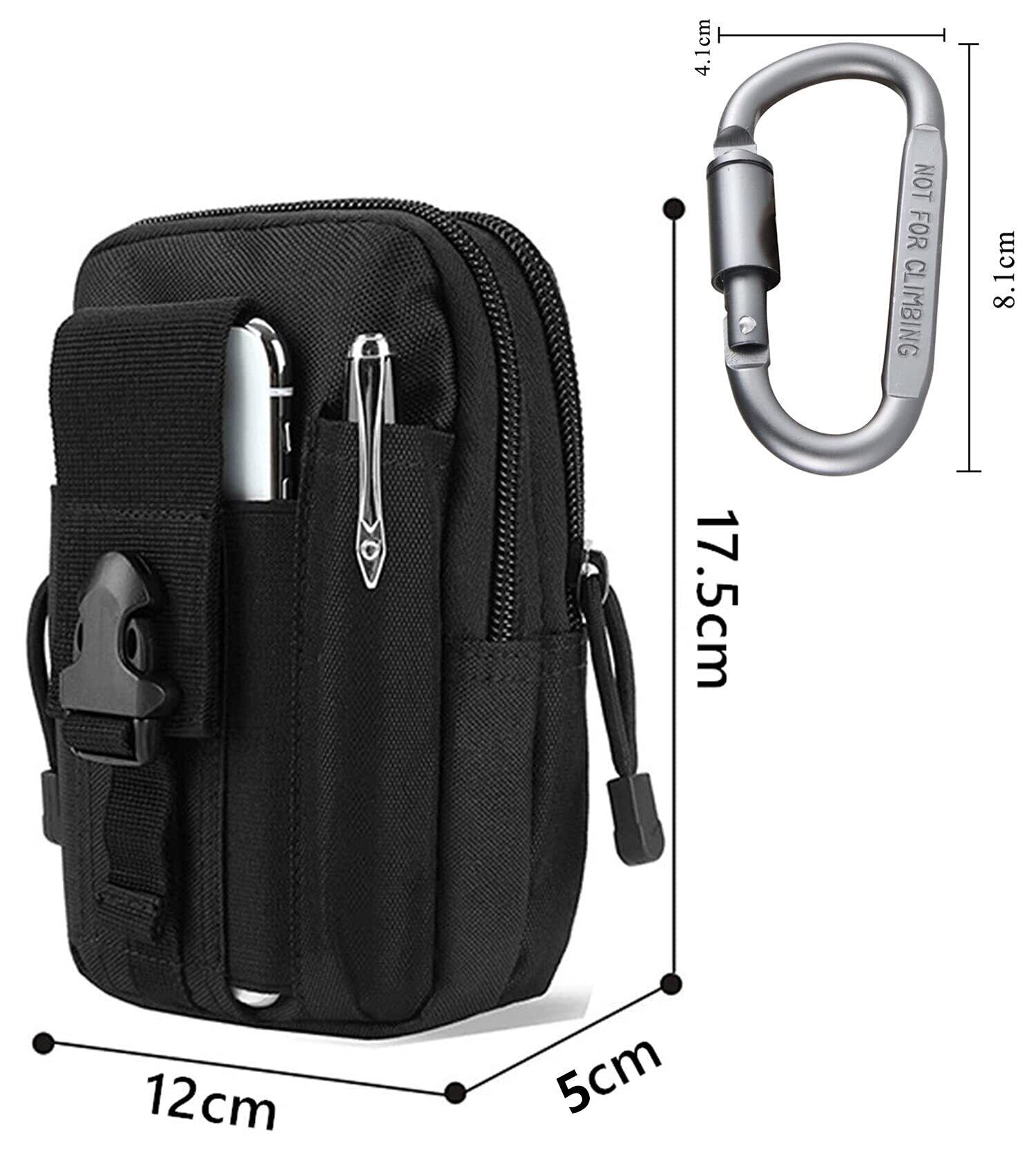 TSUCIA 多機能ポーチ ウエストバッグ 収納 マルチケース ベルト通し 撥水加工 旅行 アウトドア ハイキング 小物入れ コンパクト マルチウェストポーチ カラビナ 付き Molle対応 (ブラック)