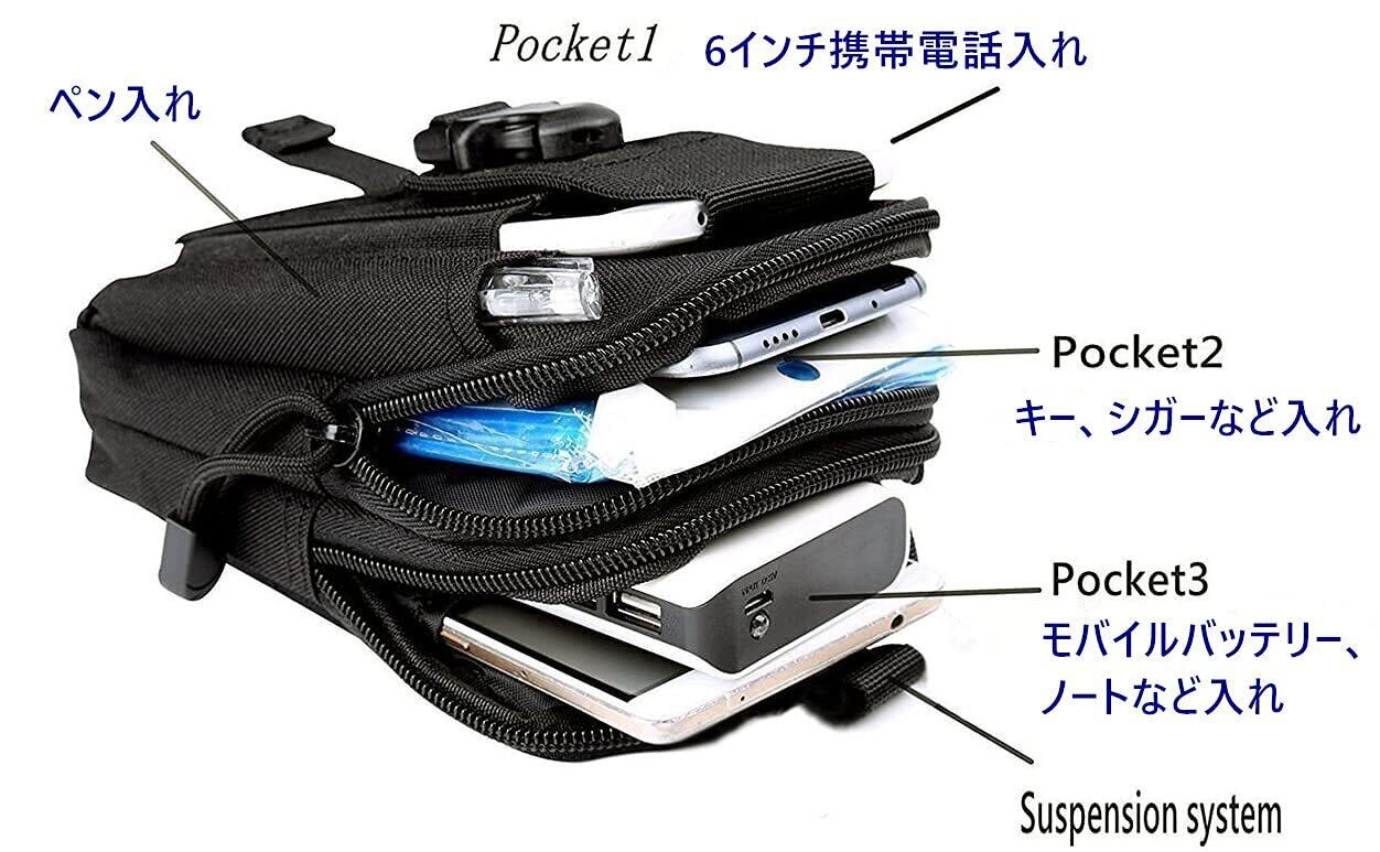 【多用途】スマホやカメラ、ボールペン、メモ帳などがしっかり入れます。用途は作業用から普段使い、サイクリング、登山、アウトドア、スポーツ、サバイバルゲームまで、様々なシーンに合わせて使い方は自在です。