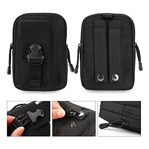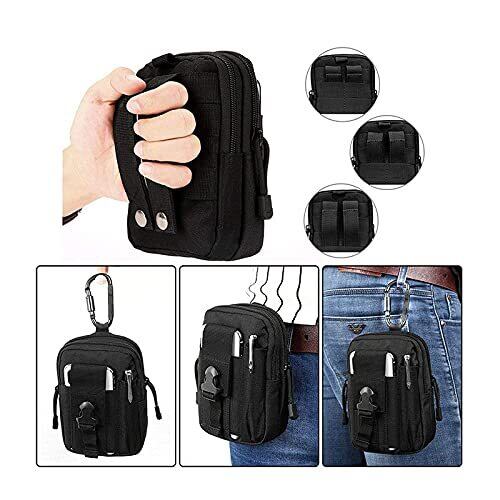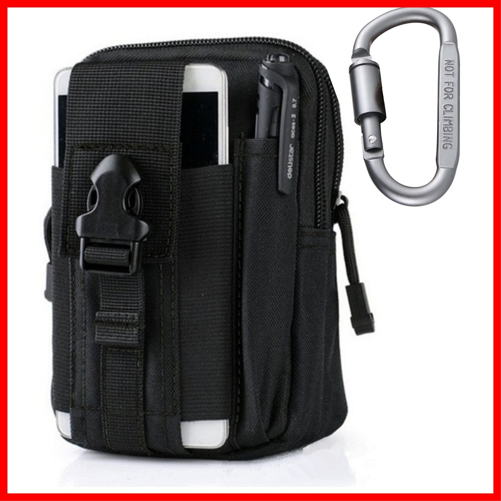 TSUCIA 多機能ポーチ ウエストバッグ 収納 マルチケース ベルト通し 撥水加工 旅行 アウトドア ハイキング 小物入れ コンパクト マルチウェストポーチ カラビナ 付き Molle対応 (ブラック) | hananoki