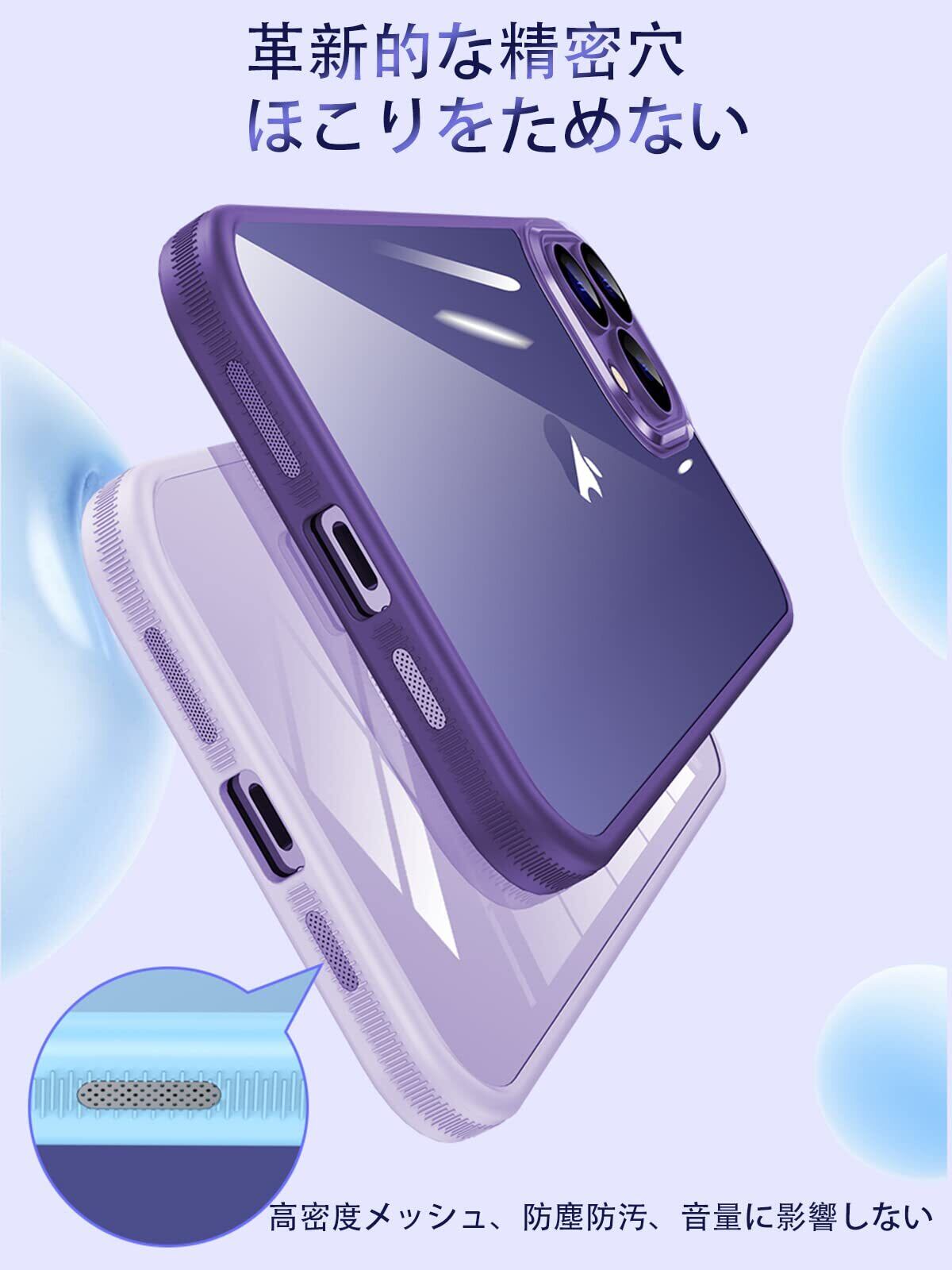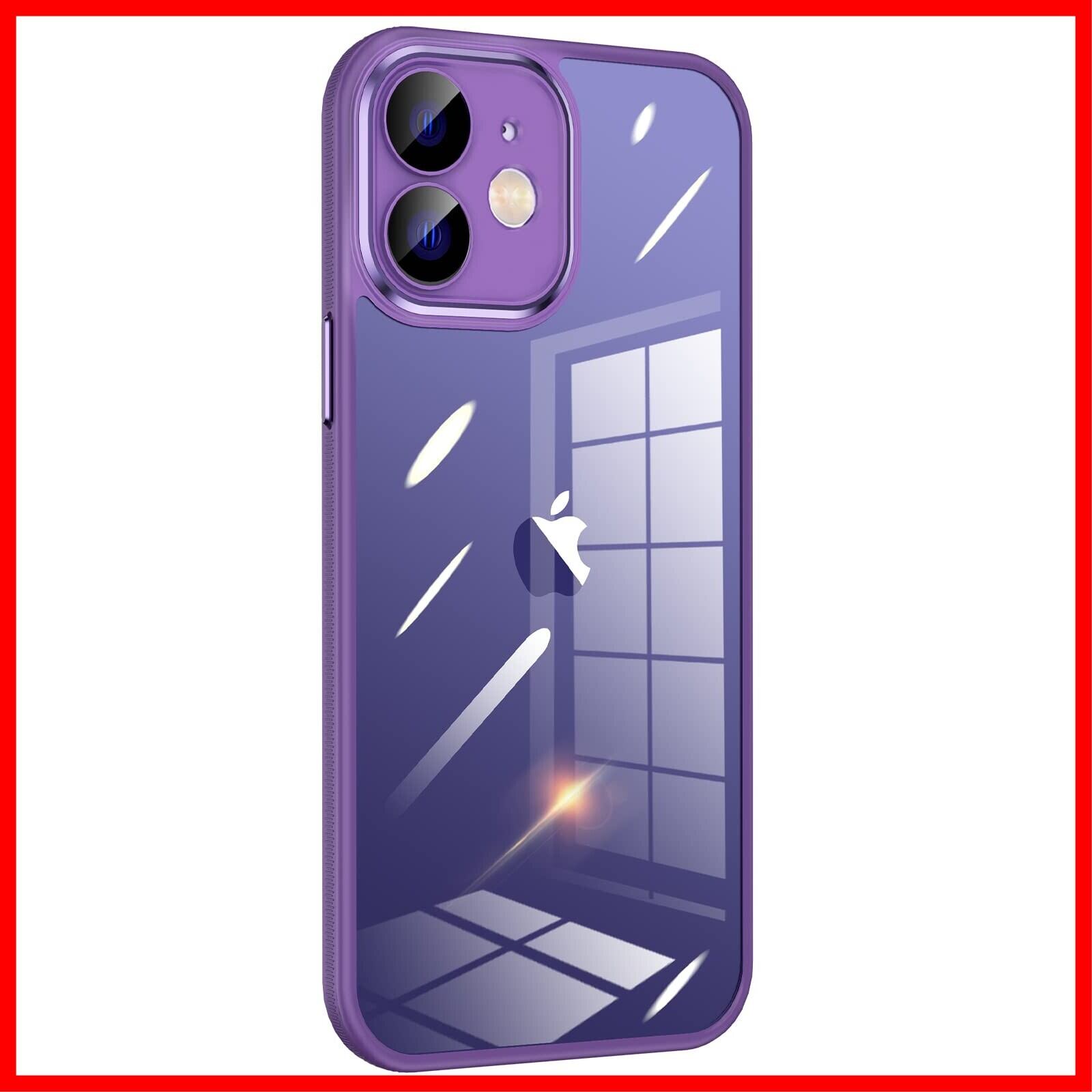 Donocao iphone 12 ケース シリコンカバー クリア 耐衝撃 薄型 軽量 ガラスフィルムレンズ保護 カメラカバー一体型 滑り止め 透明背面アクリルプレート 御洒落なメッキ金属リング かわいい ディープパープル