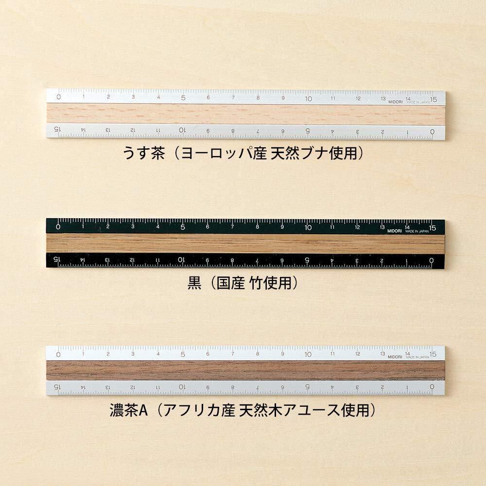 DESIGNPHIL ミドリ(MIDORI) 定規 アルミ ウッド 15cm 濃茶A 42274006