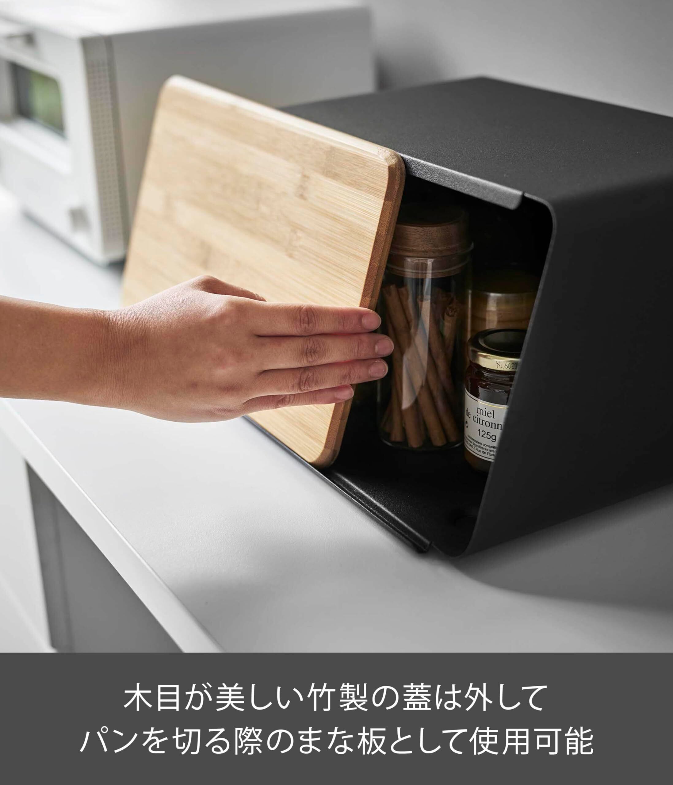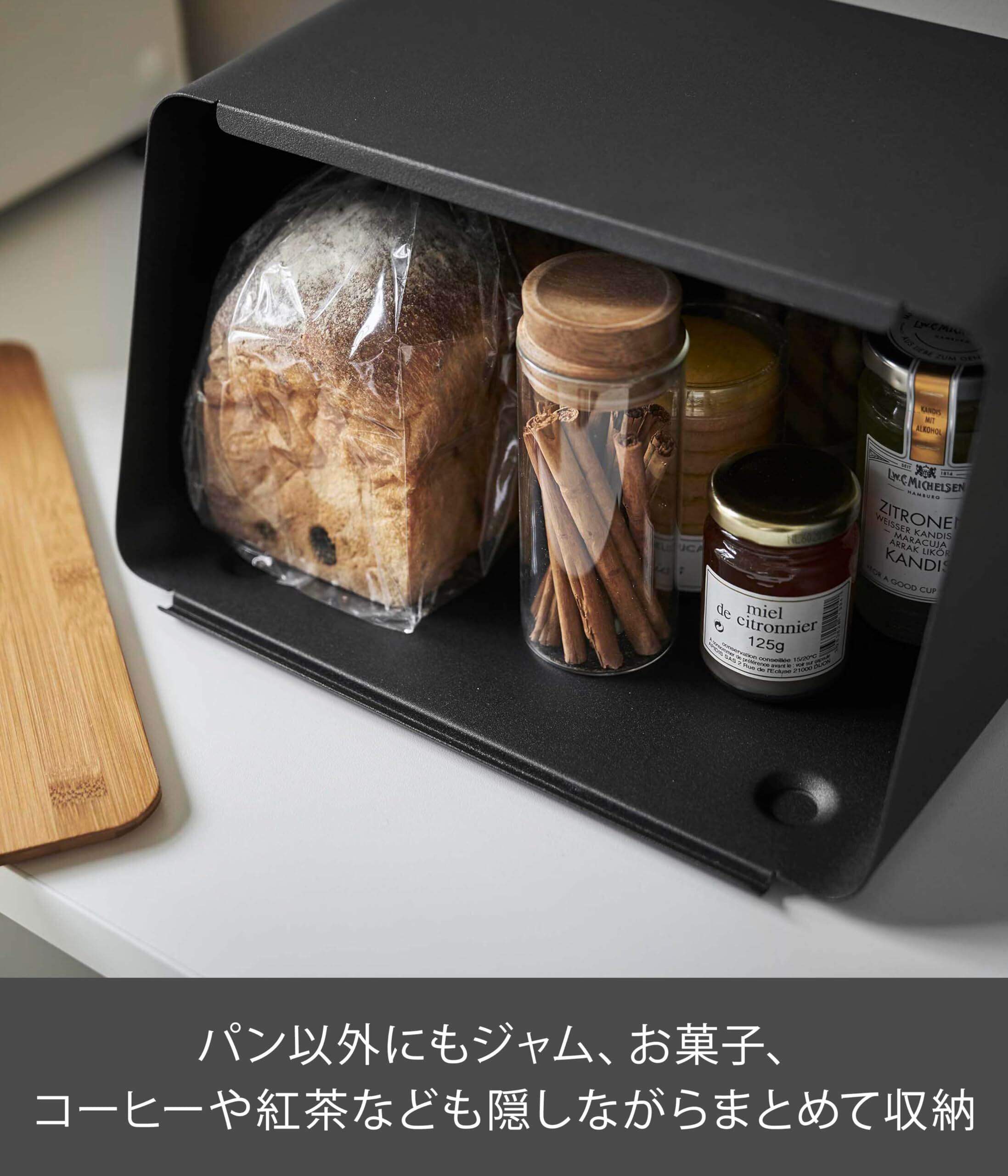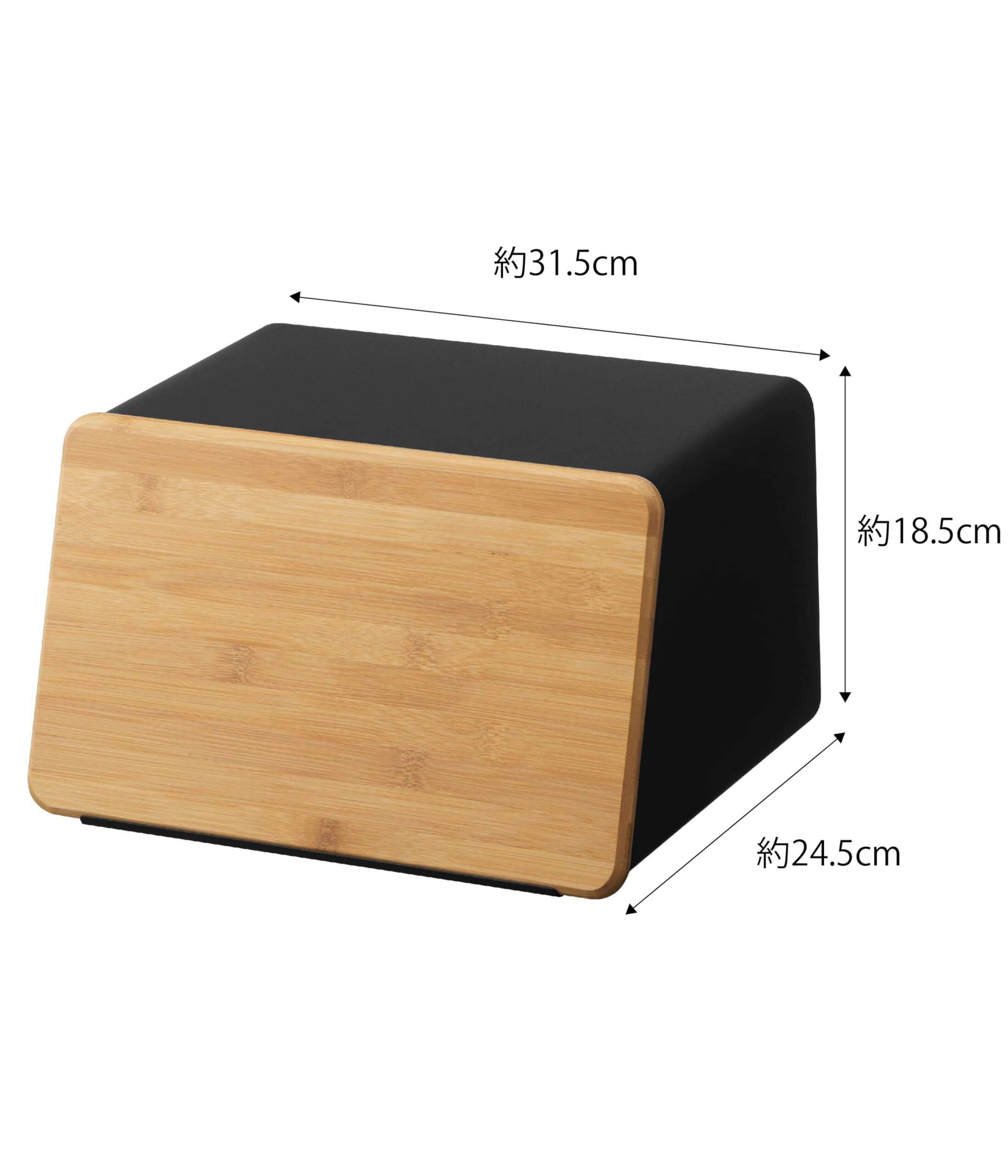 山崎実業(Yamazaki) 蓋が外せる ブレッドケース ブラック 約W31.5XD24.5XH18.5cm タワー 蓋がスライドできる パンケース 大容量 5291