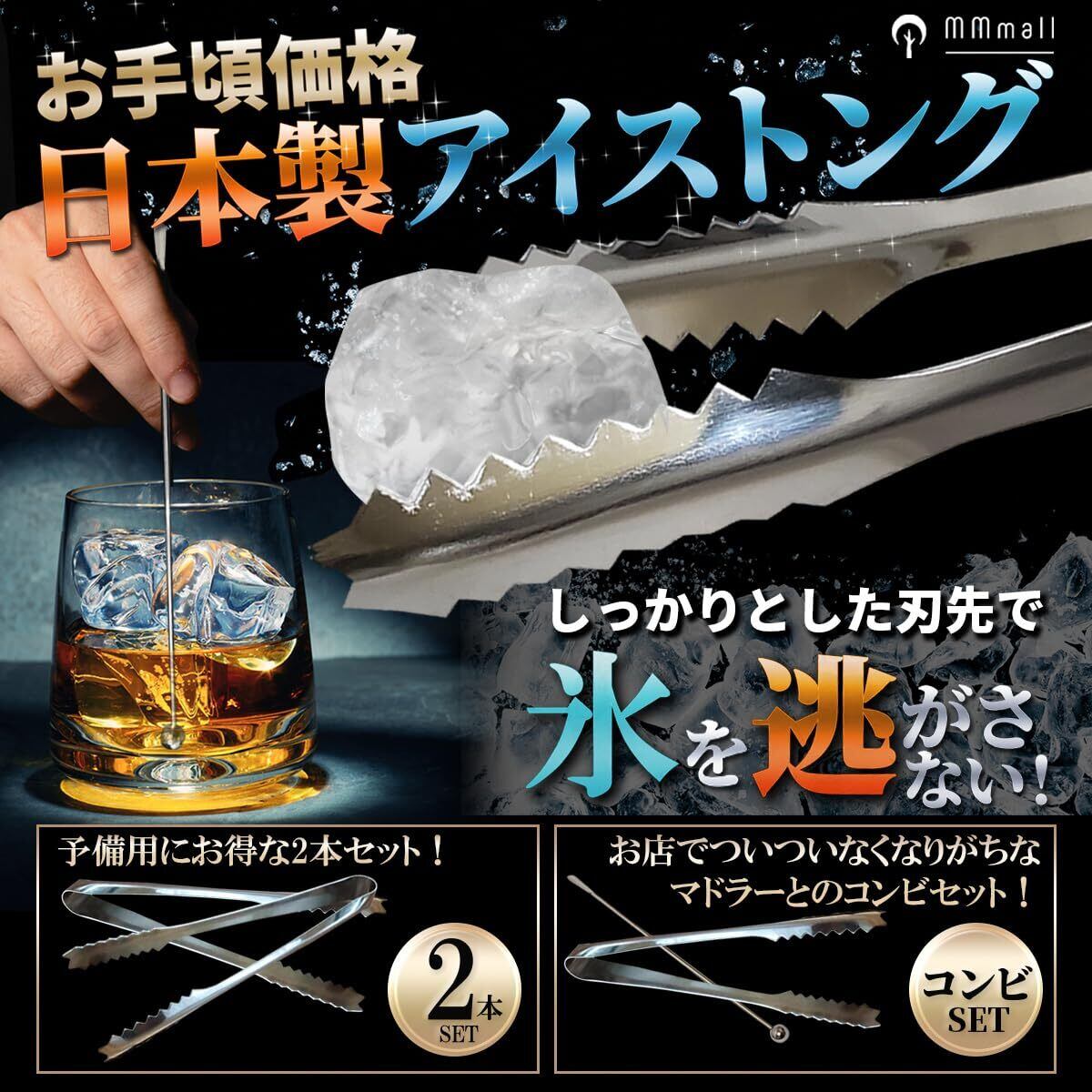 MMmall アイストング ステンレス 日本製 2本組 (ゴールドマドラーセット)