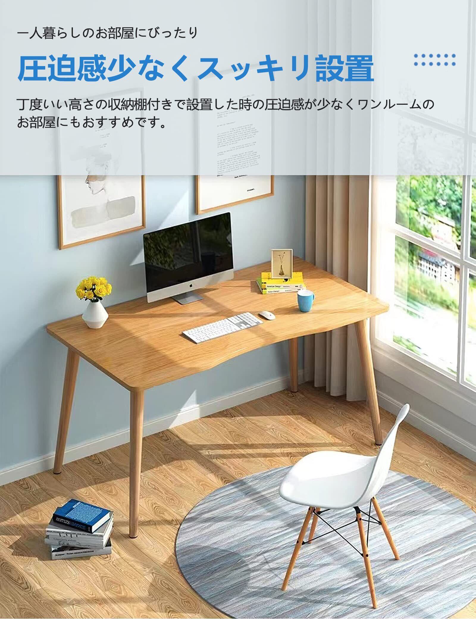 北欧のシンプルなデザイン:ナチュラルなデザインが好みの人には、木製デスクががおすすめ。素材にあたたかみがあり、落ち着いた雰囲気の部屋や和室ともマッチします。また、改良技術により天板が均一に塗布されます。見た目の美しさはもちろん、汚れや摩擦に強く、水がこぼれてもサッと拭くだけの簡単お手入れでOK。耐久性を高めるこだわり設計で、長く、安心して使える。