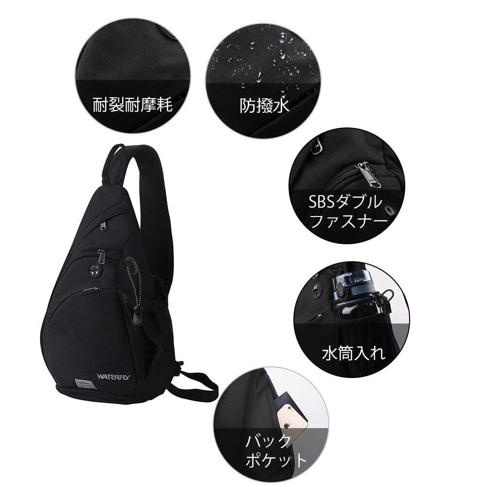 [ウォーターフライ] ボディバッグ ワンショルダーバッグ 斜めがけ 大容量 防水 軽量 イヤホン穴付き ショルダー付替え可能 スポーツ アウトドア サイクリング カジュアル 旅行