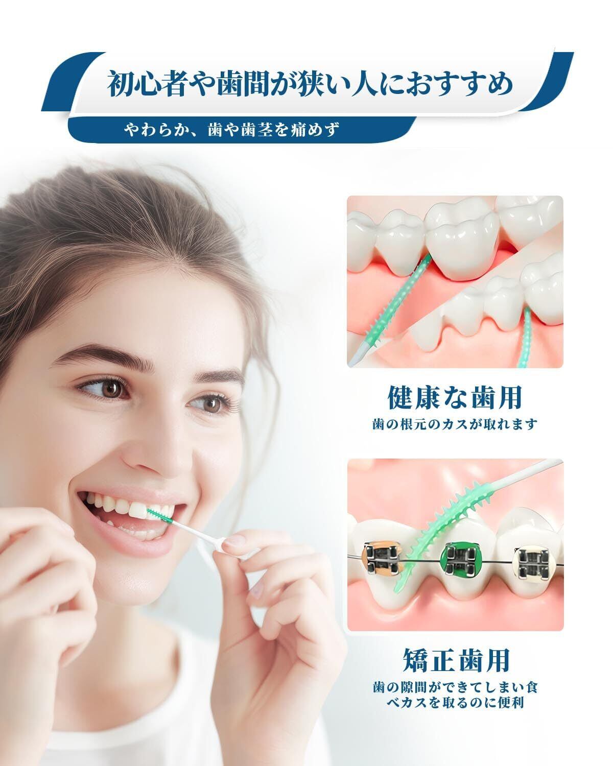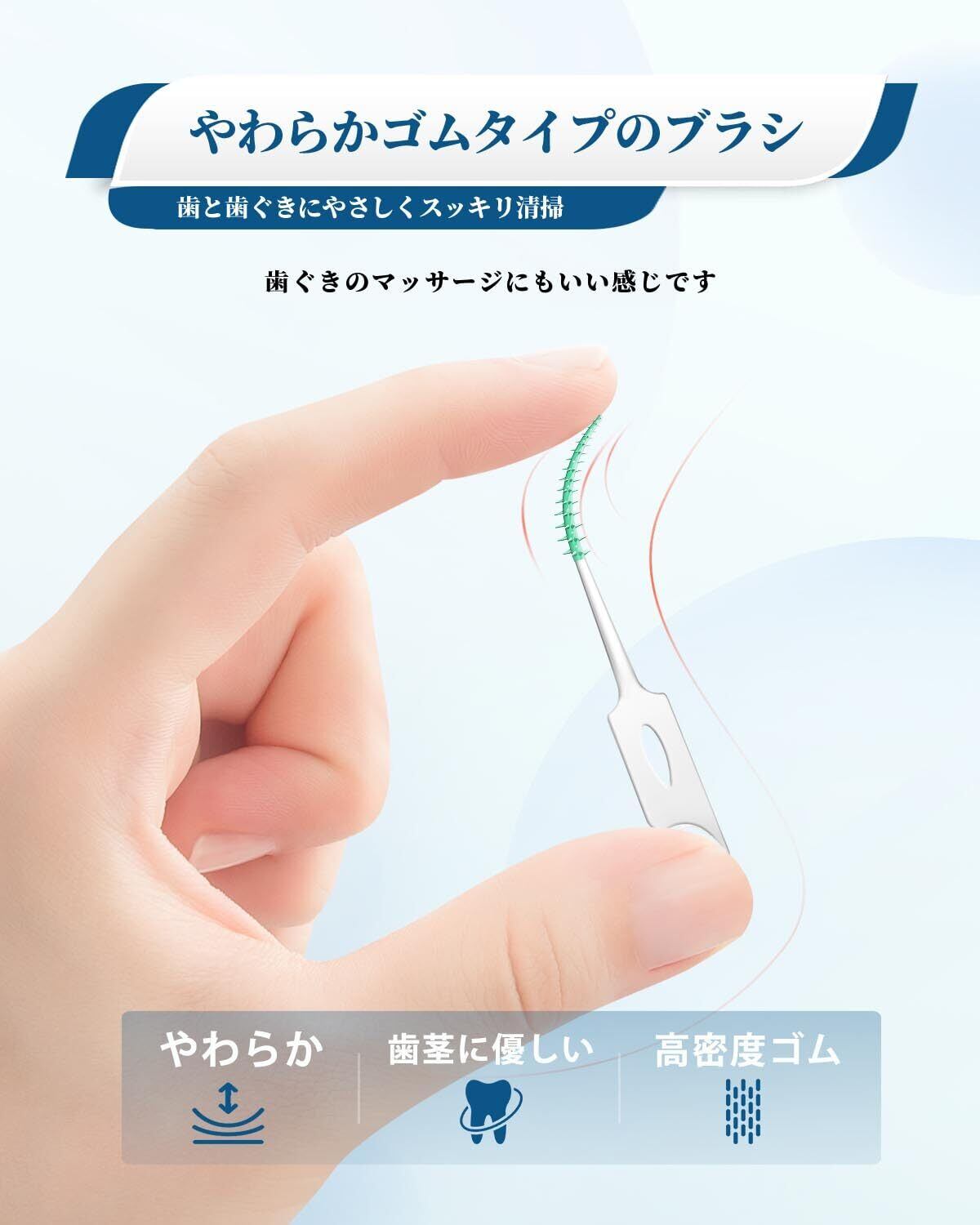 柔軟弾力性、使いやすい:柔らかい先端スムーズに歯間入ります、角度も自在、良く曲がり奥歯間まで届き磨きやすい。歯間ブラシ 歯の根元のカスが取れます、歯の隙間の部分が綺麗になります。