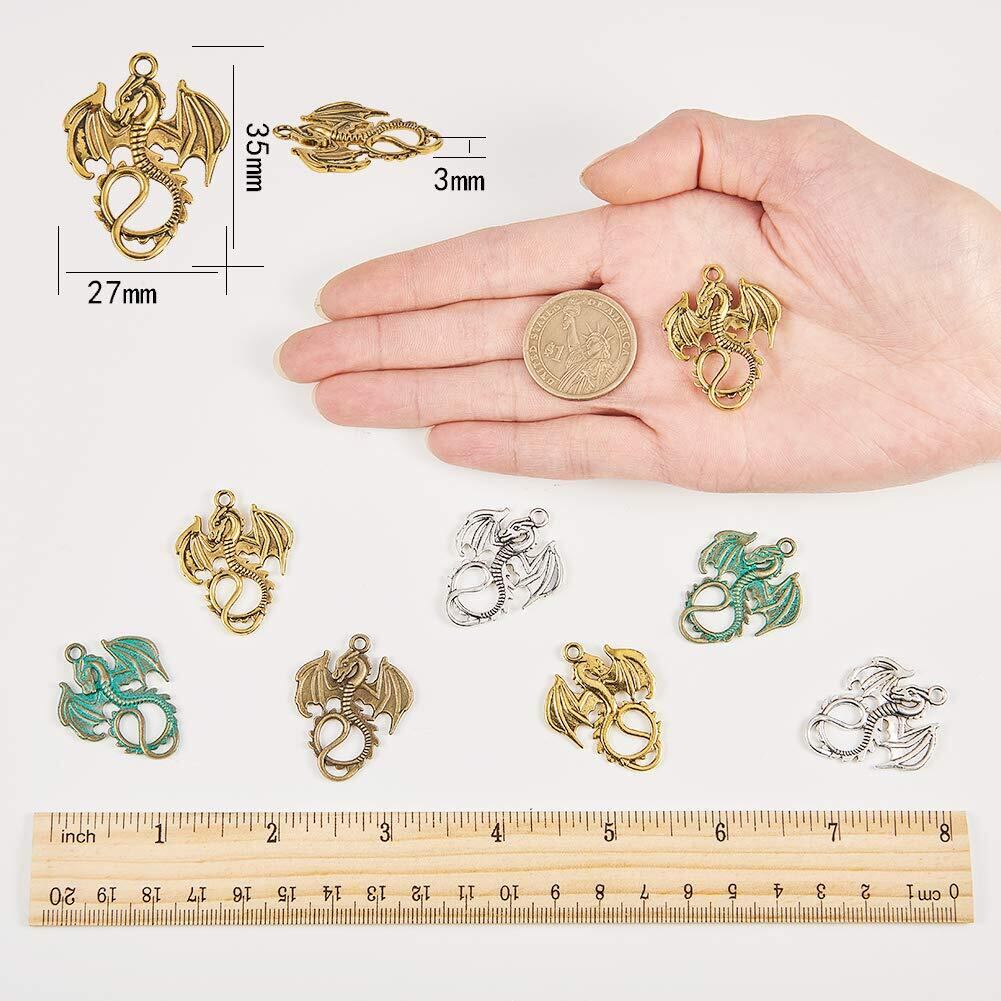 【豊富な色】:ドラゴンチャームがシルバー、ゴールド、ブロンズ、銅色この4種の異なる色があります!特別を追求しているお方の需要を満足できます。