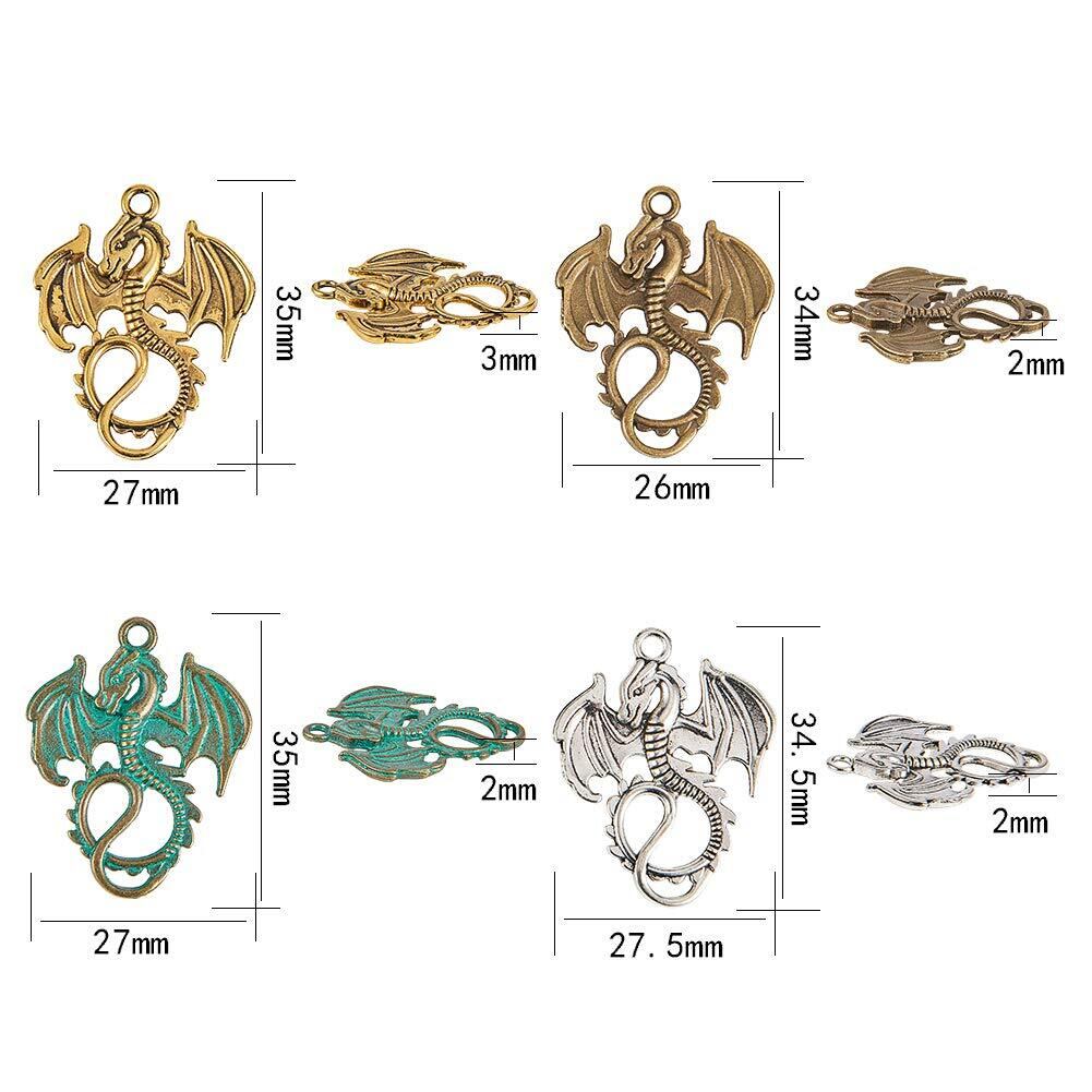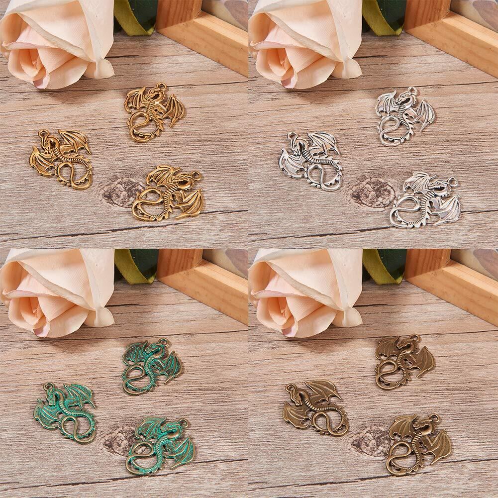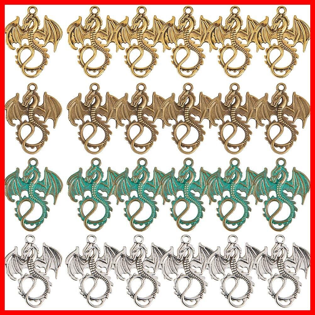 SUNNYCLUE レトロの浪 24個4色 ヴィンテージ チャーム ドラゴン レトロ チャーム 龍 ブロンズ パーツ フライングドラゴン イヤリング 竜 ピアス 西方 ネックレス ロリータ 合金チャーム 魔法 透かし キーホルダー ブレスレット メタルパーツ チベットスタイル ヴィンテージ シルバー色 ゴールド色 金古美 銀古美 銅古美 アンチック チャームパーツ アクセサリー 基礎パーツ ジュエリー作り レディース デコキット クラフト手芸 手作りキット DIY飾り物