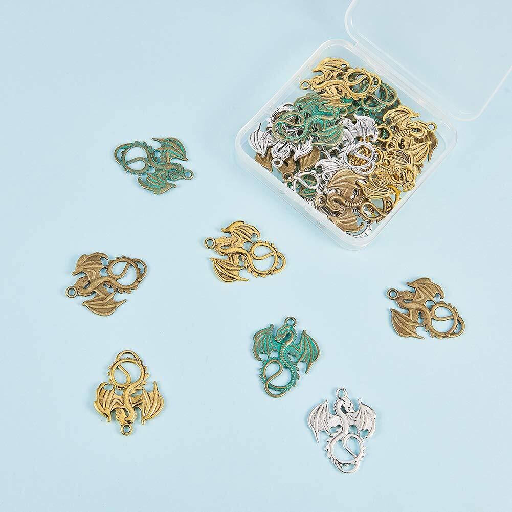 SUNNYCLUE 1箱24個4色 ドラゴンチャームチャーム チベットスタイル 合金動物 龍チャーム パーツ 銀古美 ブロンズ ゴールド色 ジュエリー所見 ネックレス ブレスレット アクセサリー ニッケルフリー 鉛フリー デコパーツ チャームパーツ クラフト手芸 手作りDIY 飾り物工芸品