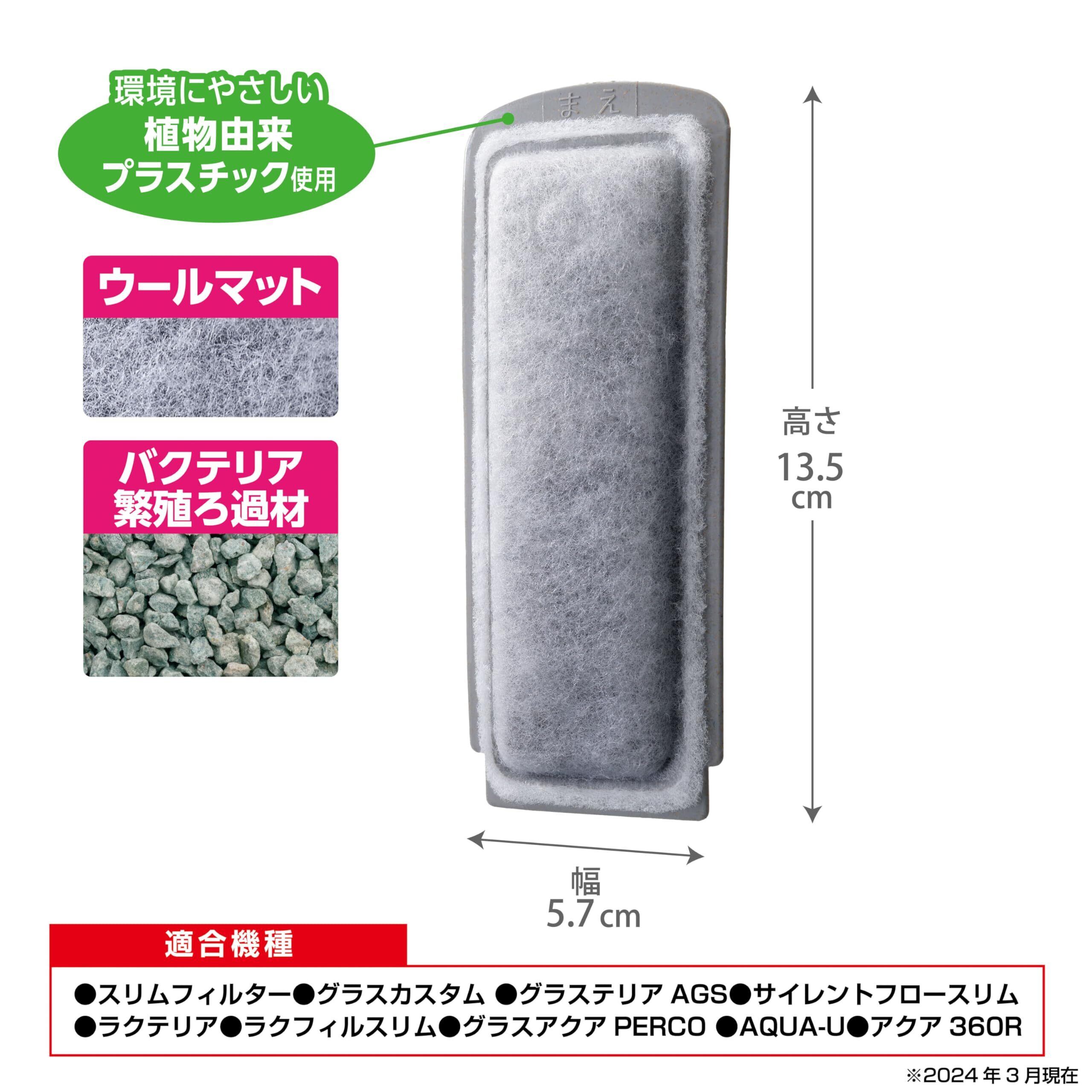 【交換の目安】3週間に1回。 【適合機種】スリムフィルター/サイレントフロースリム/グラスアクアPERCO/グラスカスタム/グラステリアAGS/ラクテリア/ラクフィルスリム/AQUA-U/アクア360R【内容量】10個