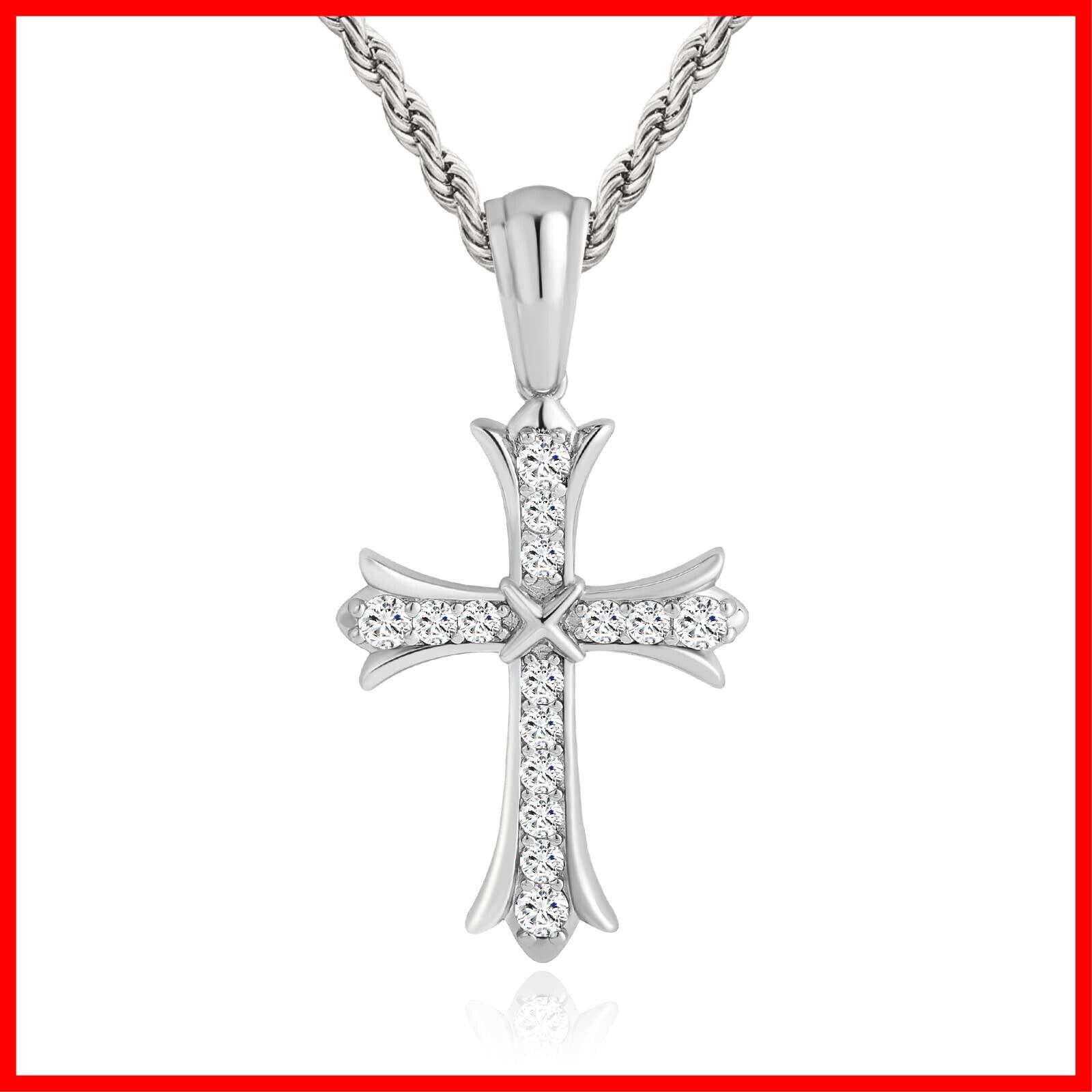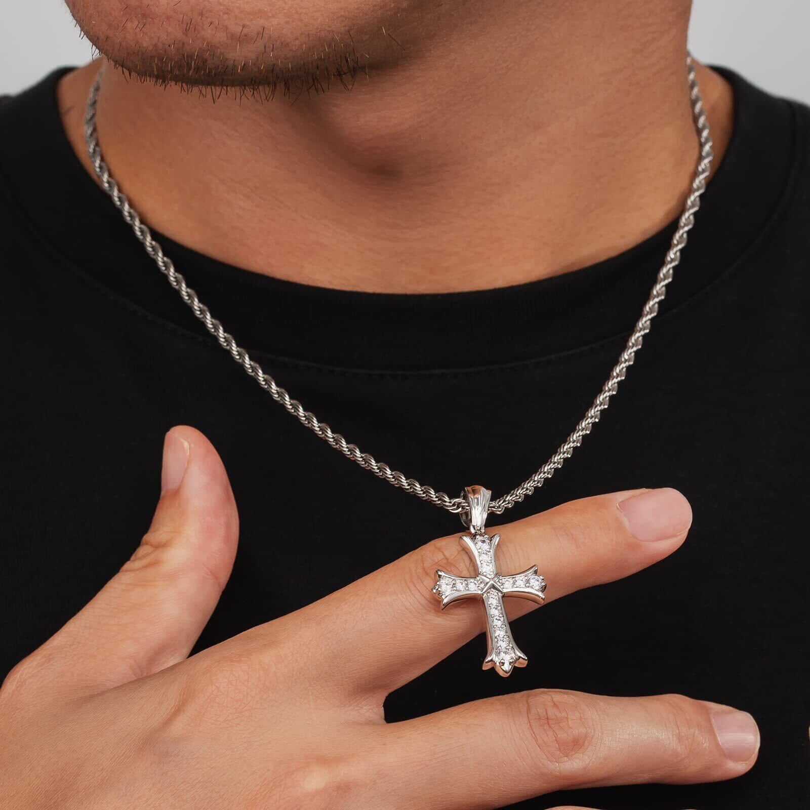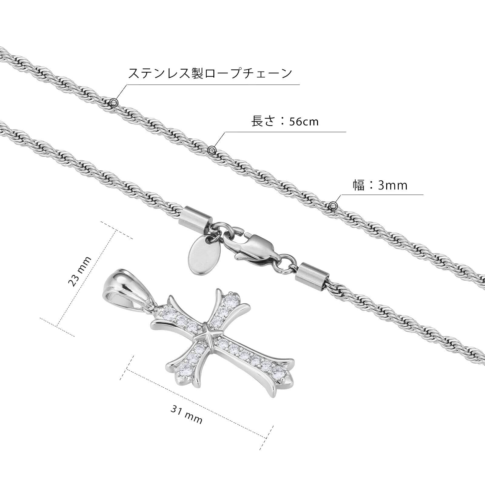 KRKC&CO クロスネックレス メンズ 十字架 ペンダントップ ジルコニア/モアサナイト チェーン付 K14金メッキ 【2点セット】 CZダイヤ キラキラ チェーンネックレス ヒップホップ 人気 プレゼント | hananoki