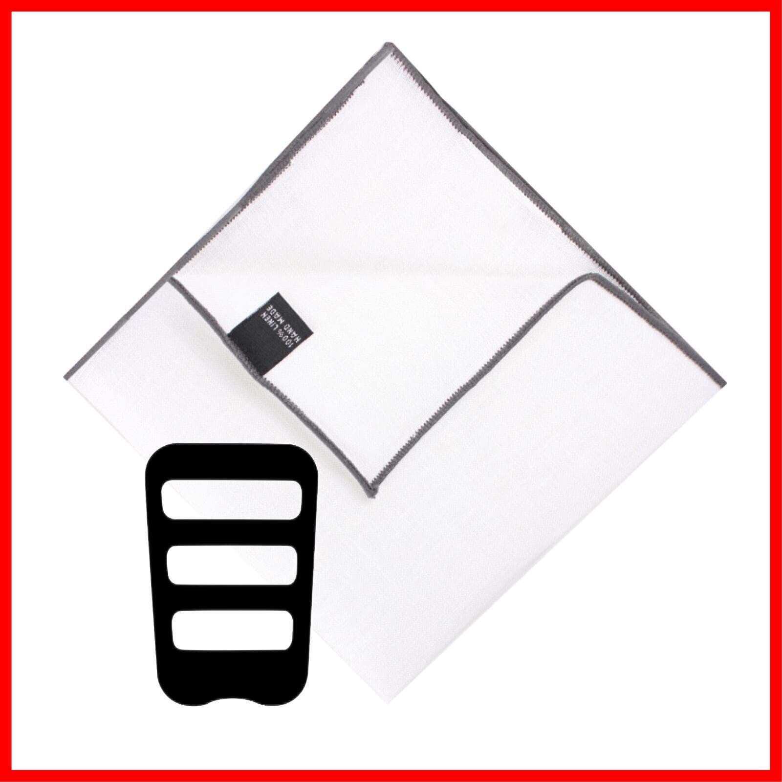 [Beirou] ポケットチーフ リネン 麻 100% 縁取り ホワイト 無地 ハンカチ メンズ 紳士 おしゃれ プレゼント 結婚式 フォーマル ビジネス カジュアル 型崩れ 防止 【ホルダーと折り方ガイド 付き】
