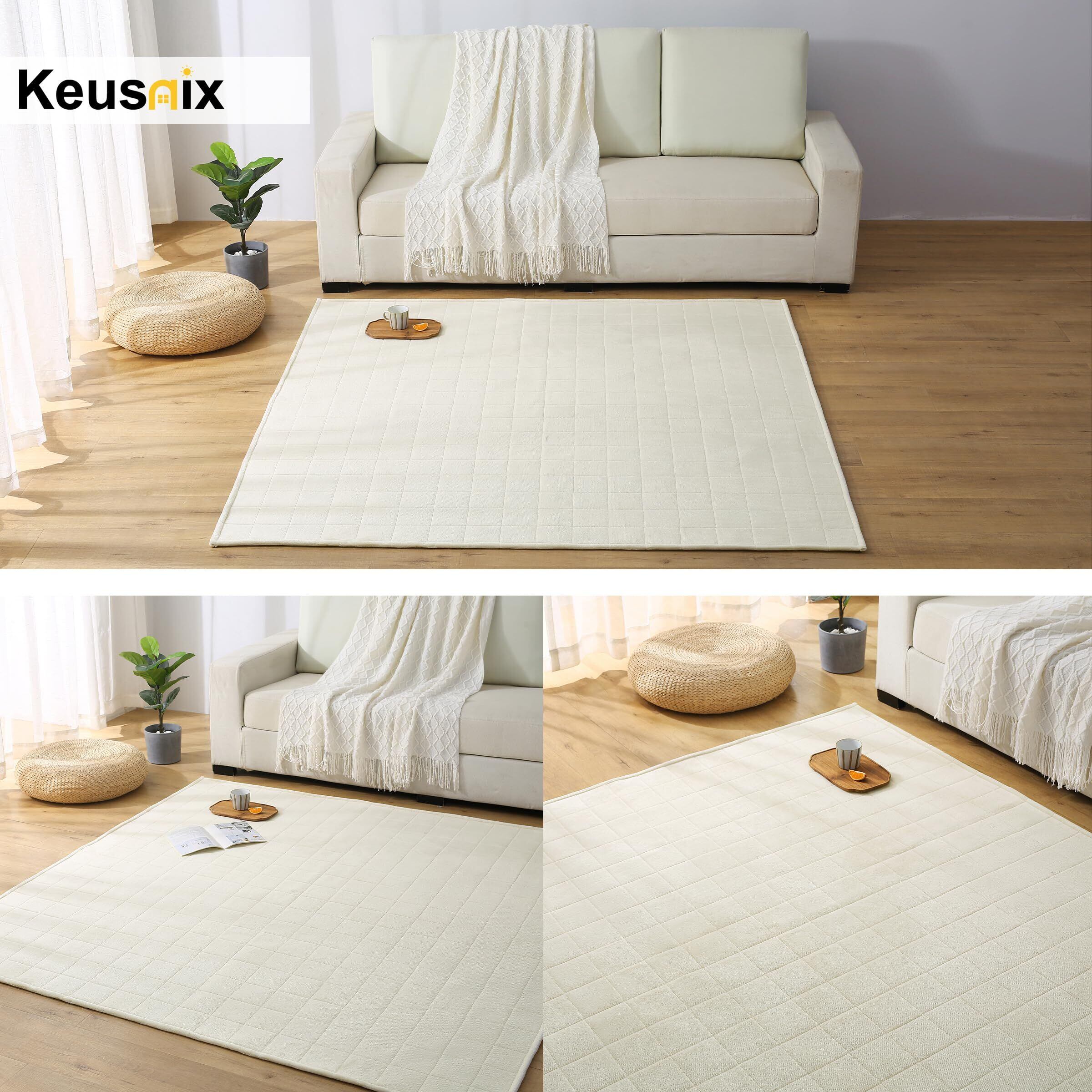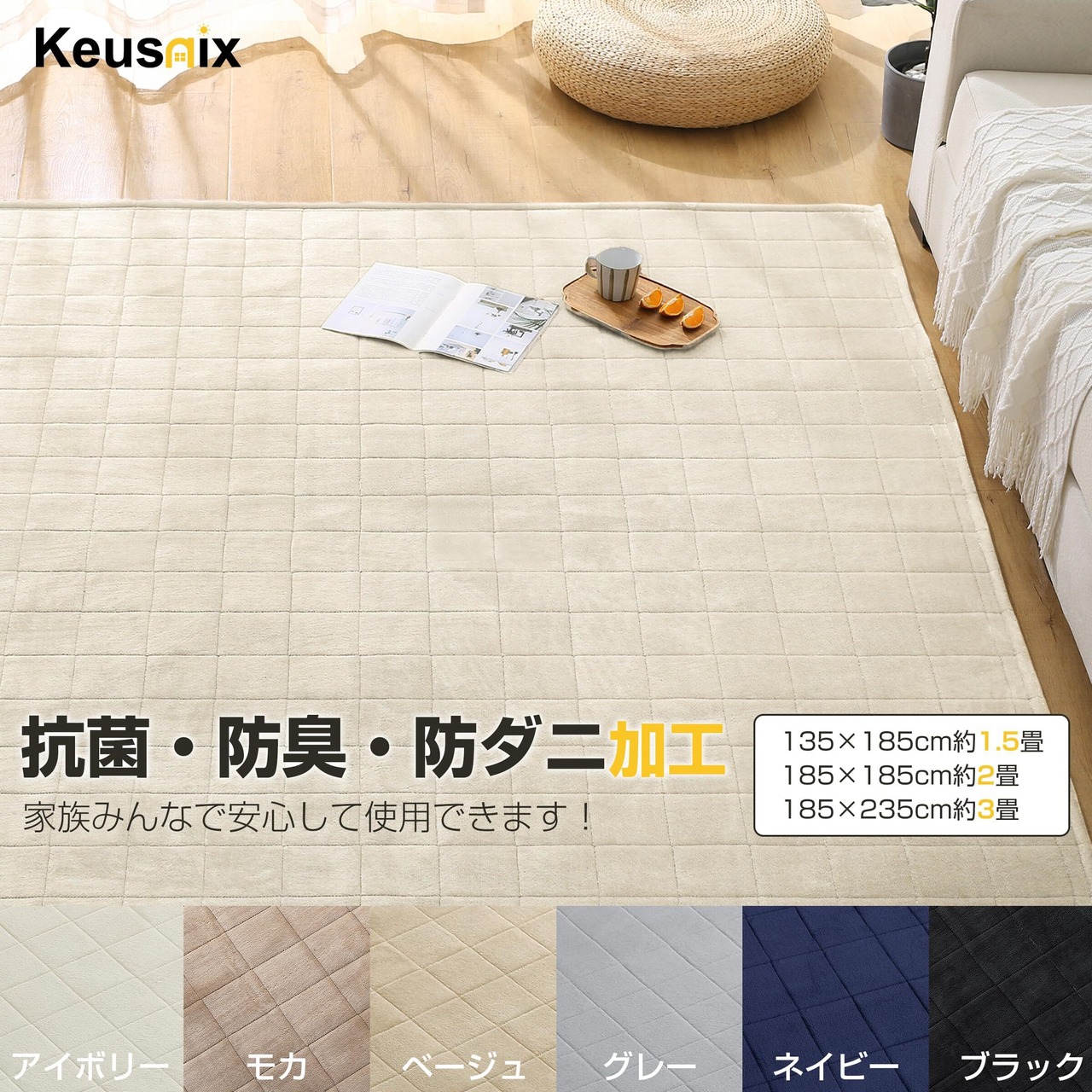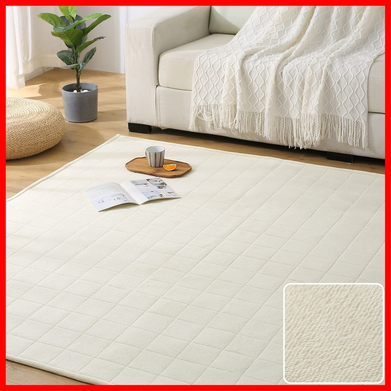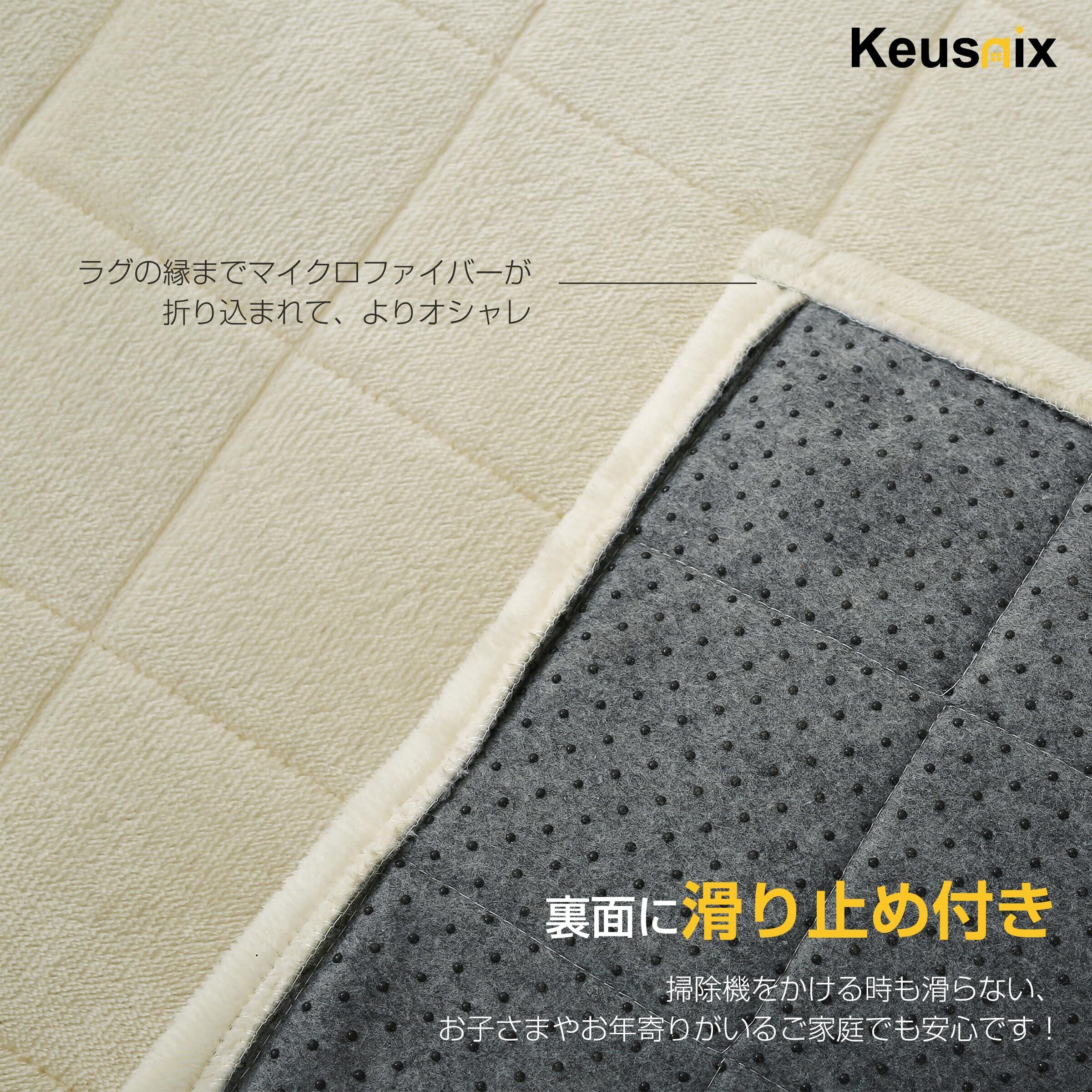 Keusnix ラグ カーペット キルトラグ 滑り止め付き 洗える ラグマット 185×235cm 約3畳 絨毯 オールシーズン 抗菌防臭 ふわふわ肌触り フランネルラグ 床暖房 ホットカーペット対応 無地 アイボリー