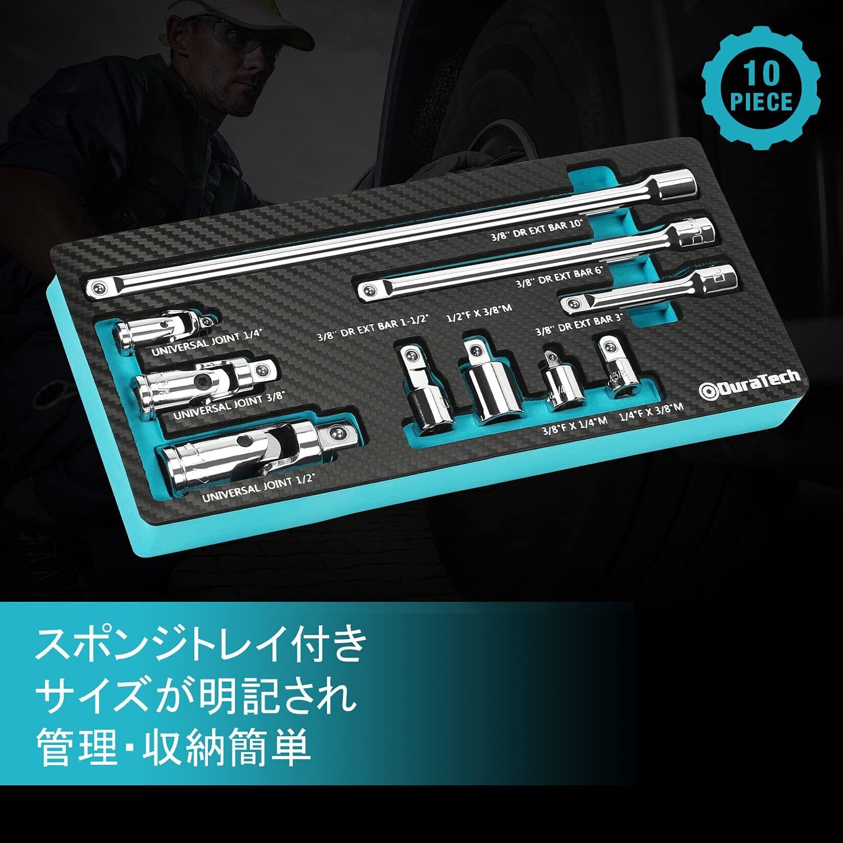 DURATECH ソケットアダプター エクステンションバー ユニバーサルソケット ソケット変換アダプター 差込角6.35mm 9.5mm 12.7mm CR-V製 メッキ仕上げ 収納ケース付 10点セット