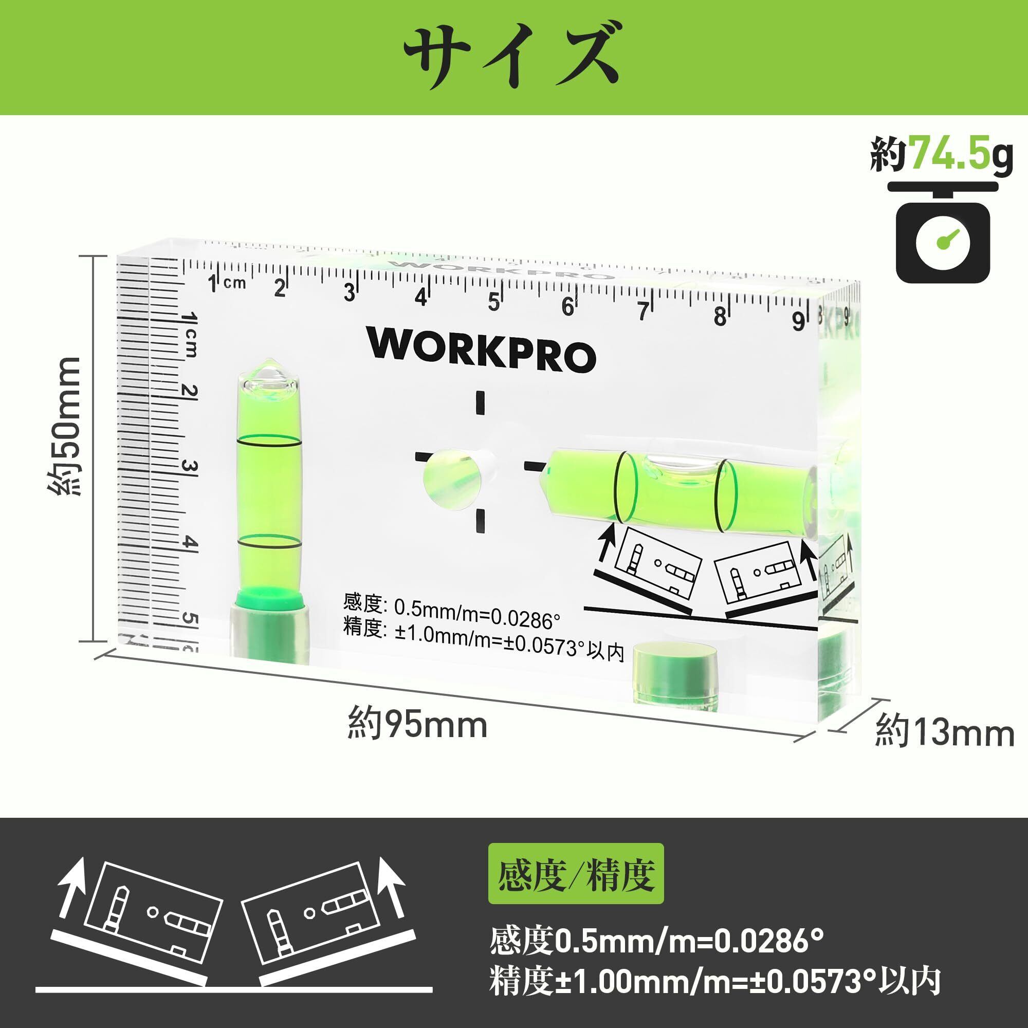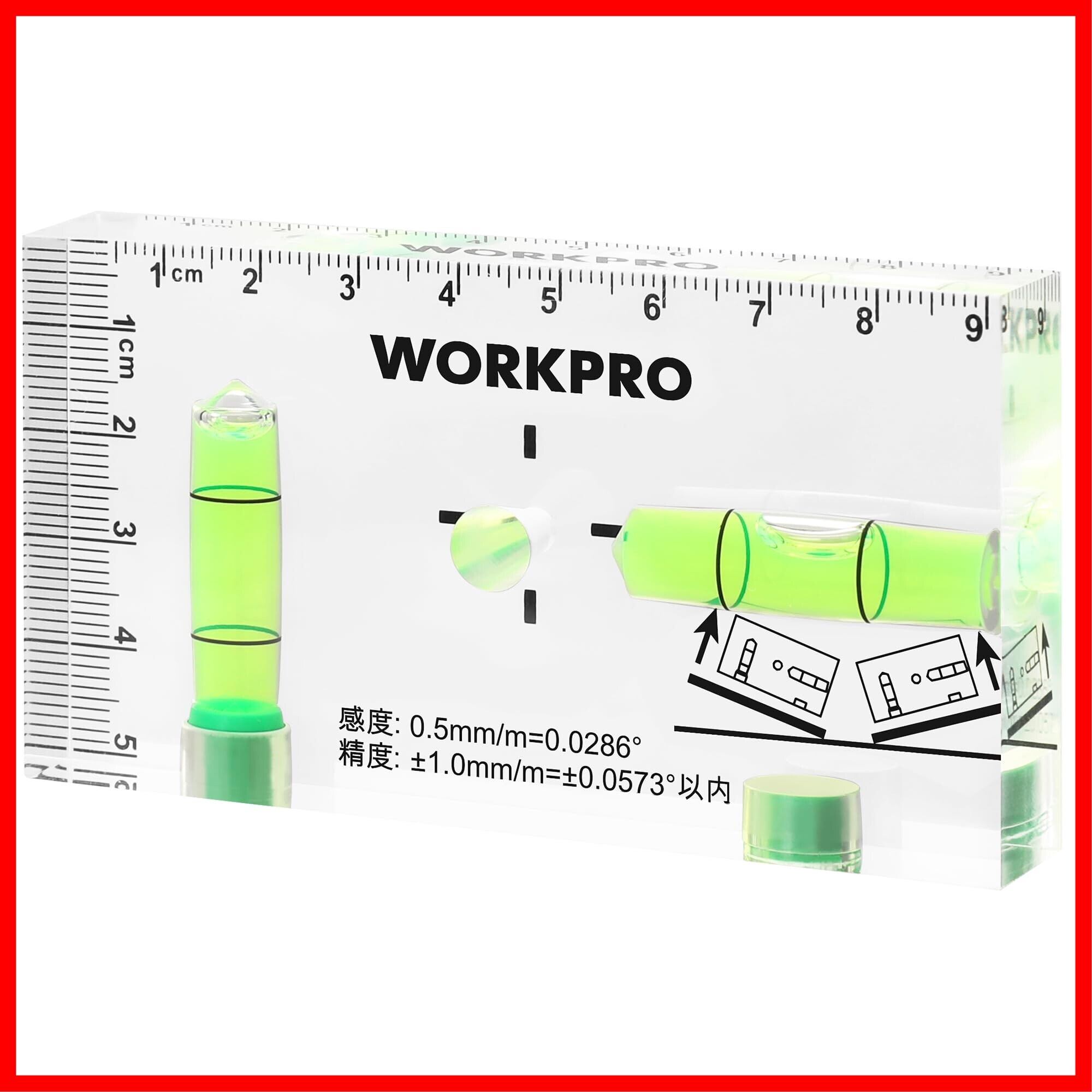 WORKPRO ミニレベル ミニ水平器 スイッチボックスケガキレベル クリスタルレベル 水準器 アクリルチューブ バブルレベル 6面測定 マグネット付 水平気泡管 垂直気泡管 目盛り付 95mm