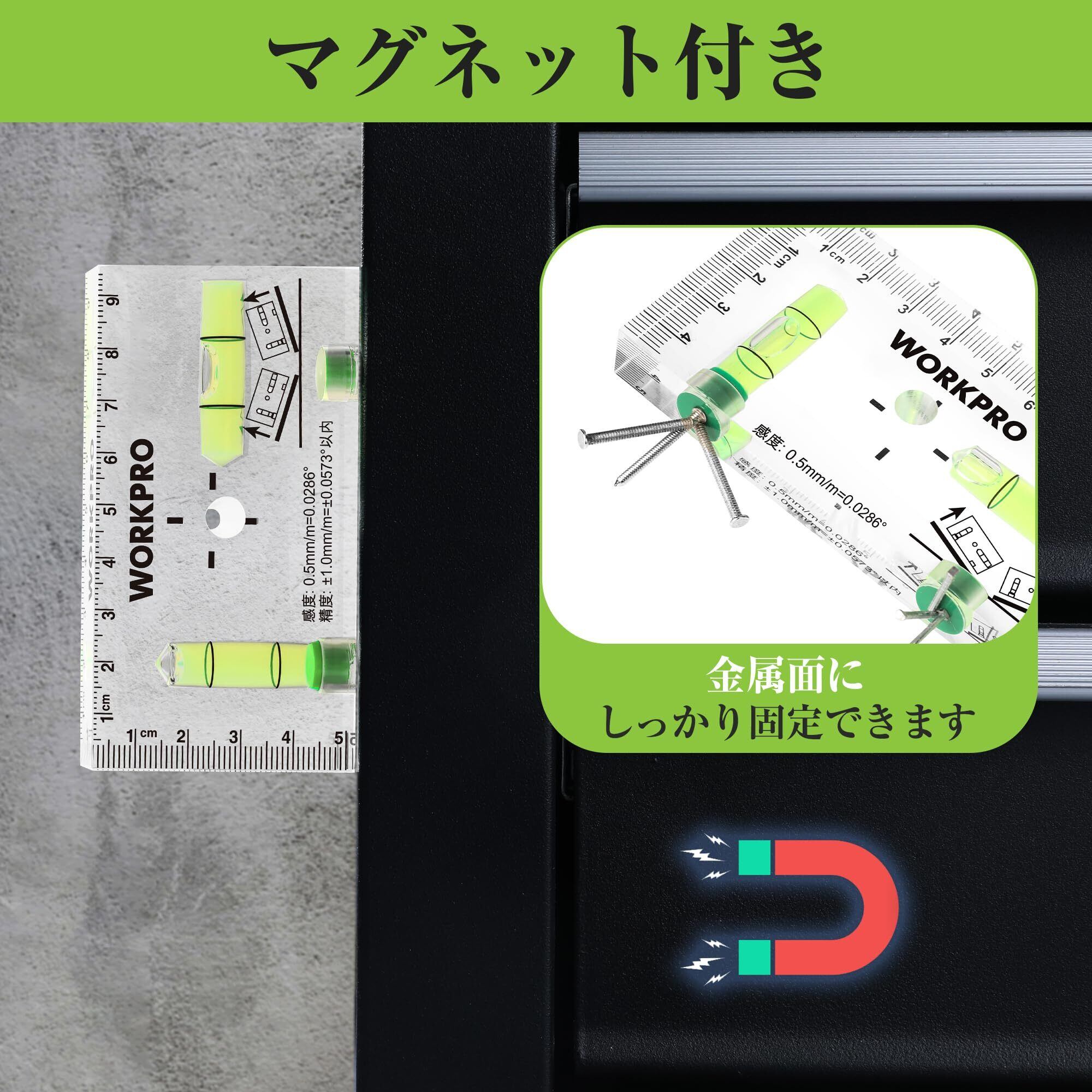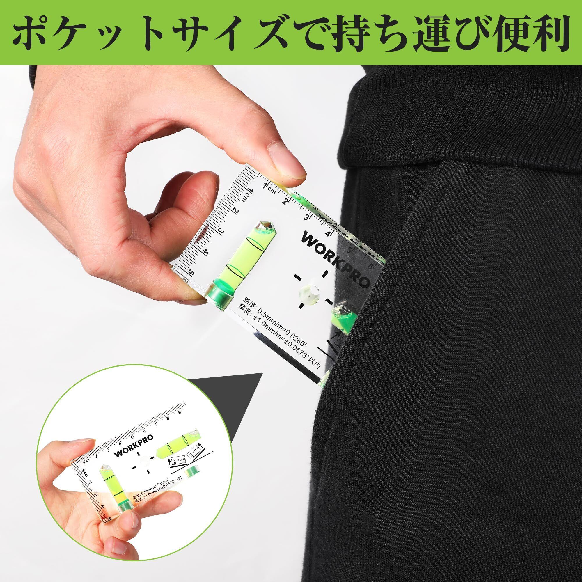 WORKPRO ミニレベル ミニ水平器 スイッチボックスケガキレベル クリスタルレベル 水準器 アクリルチューブ バブルレベル 6面測定 マグネット付 水平気泡管 垂直気泡管 目盛り付 95mm | hananoki