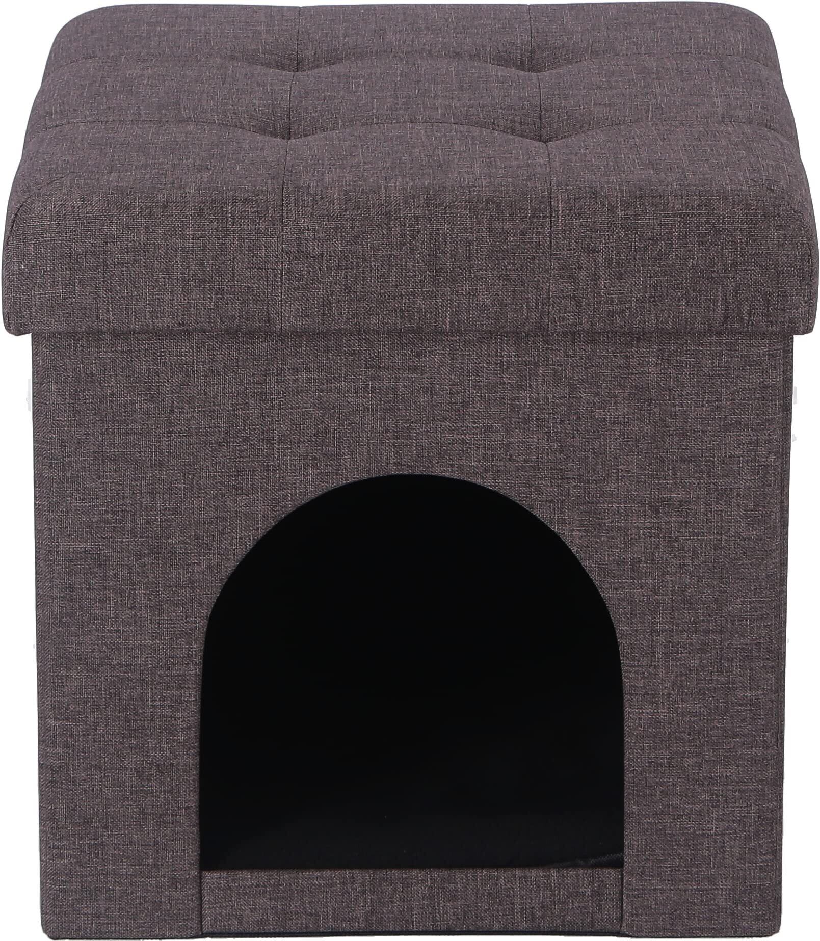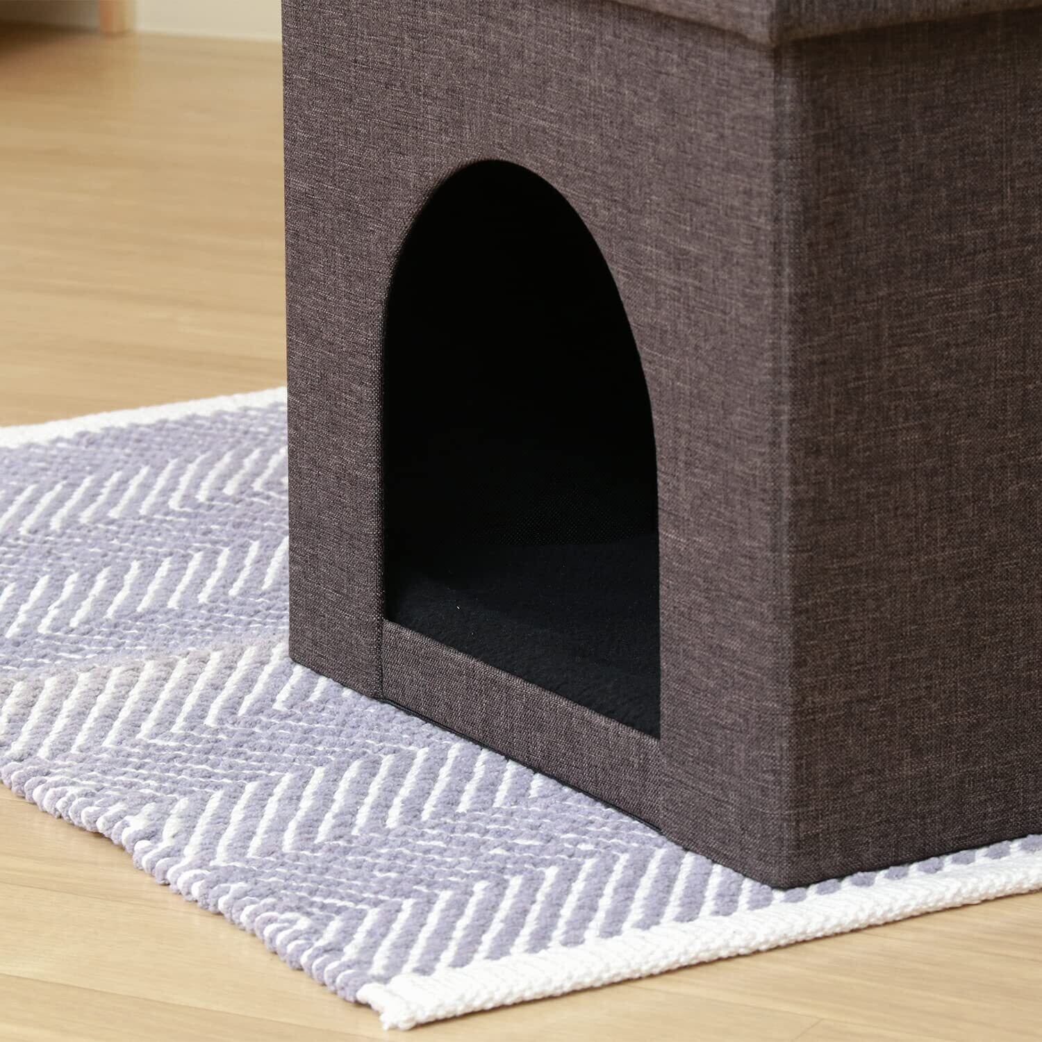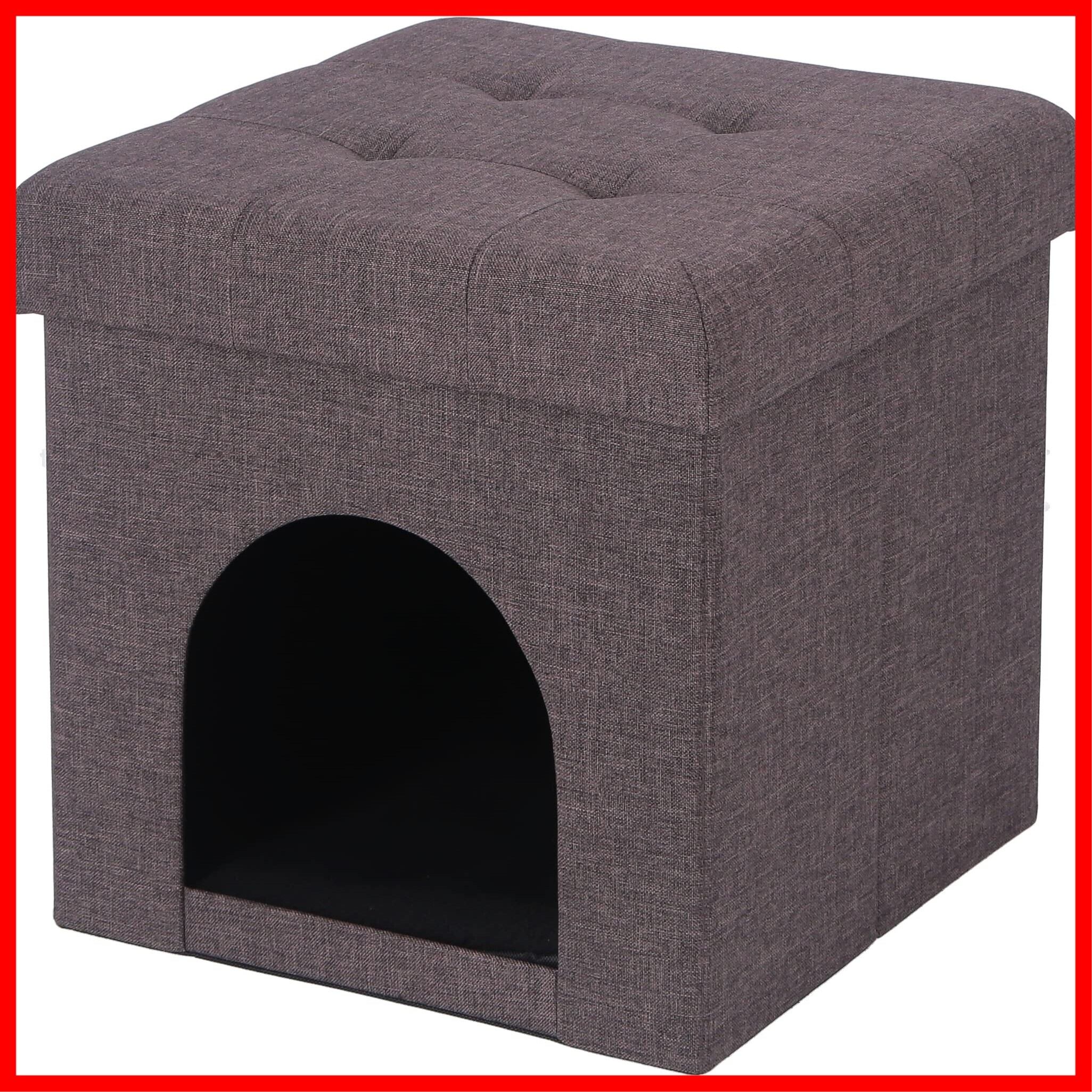 不二貿易(Fujiboeki) ペットハウス 収納スツール 幅38×奥行38×高さ38cm チャコール ファブリック 折り畳み可能 53708 小型