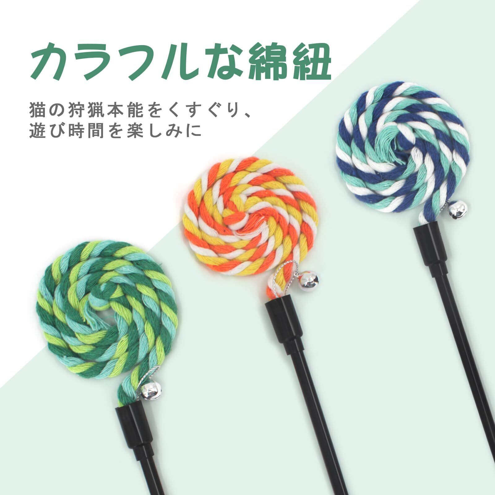 SONGWAY 猫じゃらし 猫 おもちゃ 人気 綿紐竿 頑丈 ストレス解消 3本3色入り