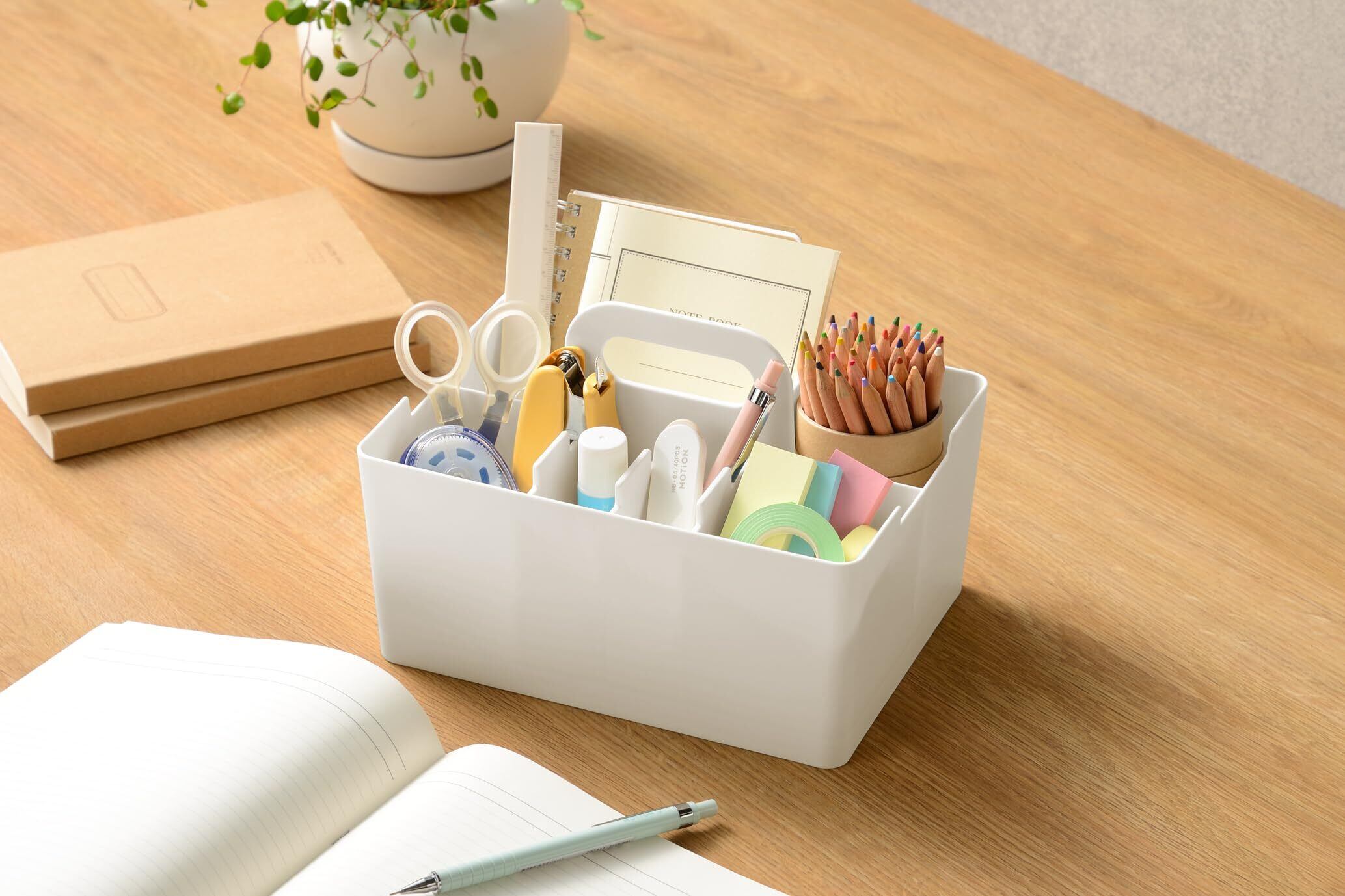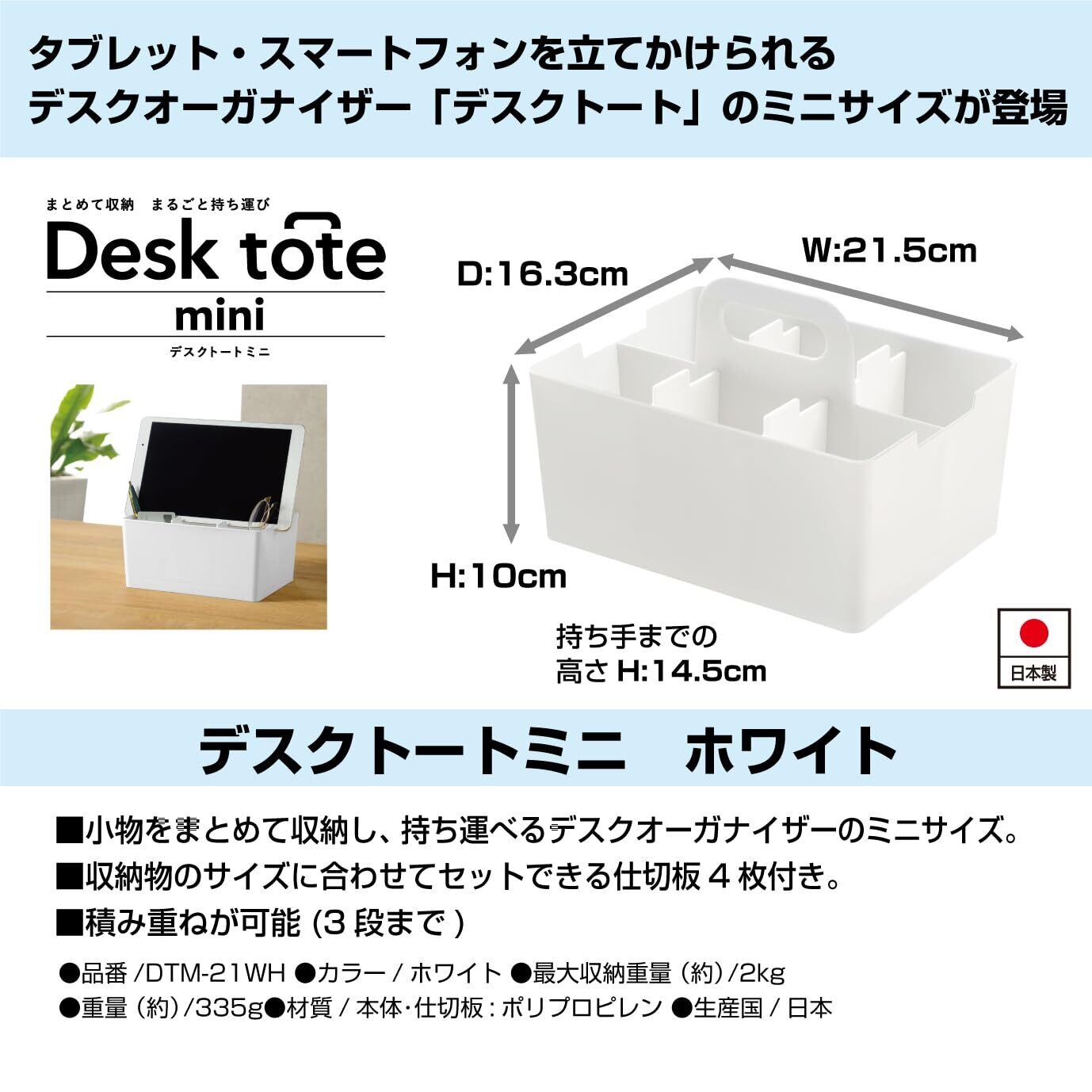 JEJアステージ(JEJ Astage) 収納ボックス デスクトート ミニ デスクオーガナイザー ホワイト 積み重ね 日本製 幅21.5×奥行16.3×高さ14.5cm