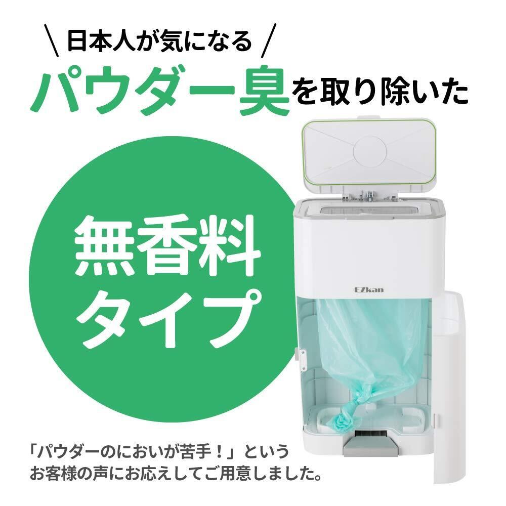 【においをブロックする高密度ポリエチレン製 & 無香料タイプ】 EZkan(EZ270)専用の取り換えロールです。においをブロックする高密度ポリエチレン製。 さらに、日本人には気になる独特なパウダーのにおいを取り除いた無香料タイプ。「パウダーの香りが苦手!」というお客様の声にお応えして、無香料タイプをご用意いたしました。