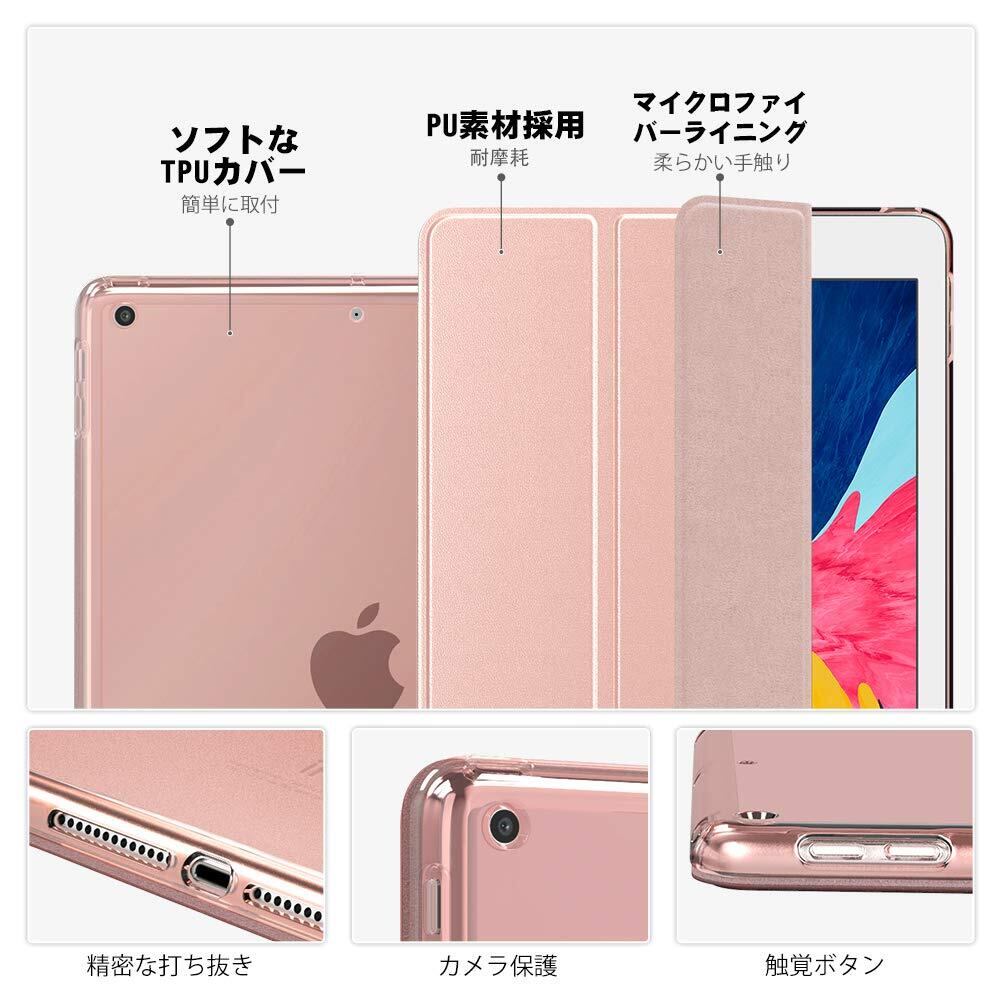 iPad 10.2 ケース 2021 MoKo iPad 9 第9世代/第8世代/第7世代 Apple iPad 10.2インチ 2021/2020/2019モデル カバー 半透明 軽量 薄型 スタンド仕様 オートスリープ機能 高級PUレザー 底面TPU製 ソフト 耐久性 便利 スマートケース RoseGold | hananoki