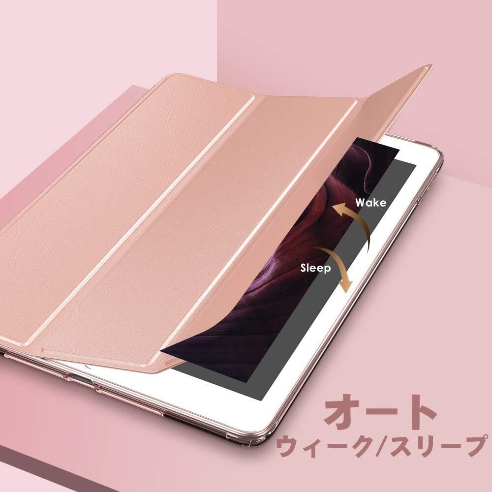iPad 10.2 ケース 2021 MoKo iPad 9 第9世代/第8世代/第7世代 Apple iPad 10.2インチ 2021/2020/2019モデル カバー 半透明 軽量 薄型 スタンド仕様 オートスリープ機能 高級PUレザー 底面TPU製 ソフト 耐久性 便利 スマートケース RoseGold