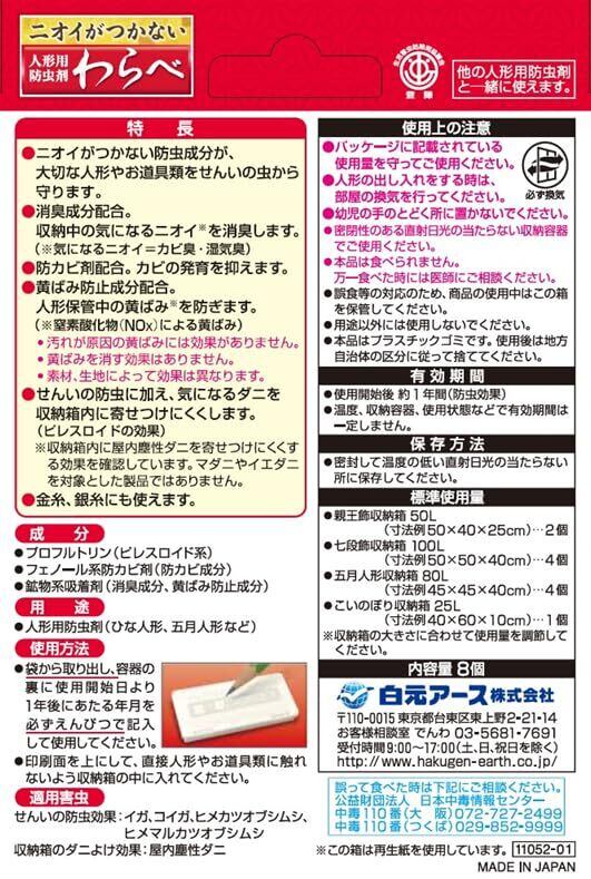 人形用調湿剤わらべ 白元アース ニオイがつかない 人形用防虫剤わらべ 16個入(8個入×2個セット)