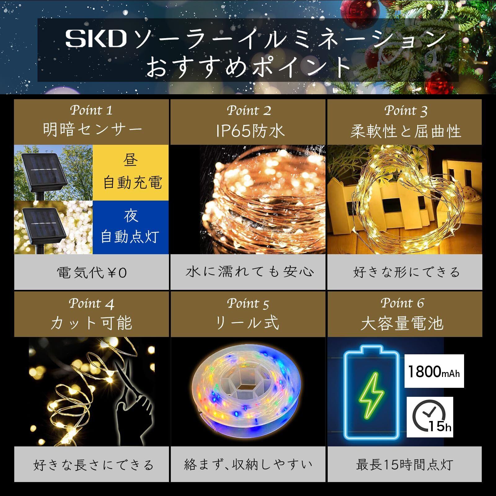SKD イルミネーションライト ソーラーライト 1800mAh 大型パネル 最大15時間点灯 防水 200LED 20m 日本語マニュアル付 屋外 防水 ガーデン ハロウィン クリスマス (ゴールド)